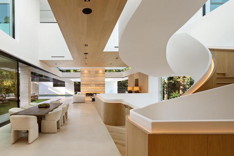 Villa Anahid Just completed---architectural masterpiece showcasing 3 above-ground levels w/exceptional design by Mike Khalesi, Beverley Hills One. 5 bedrooms, 6 full baths & 2 half-baths, plus a separate 2-bedroom, 2.5-bath ADU w/kitchen and laundry. A sculptural floating staircase spans all 3 levels plus there is an elevator. Dramatic living spaces include an entry level lounge with fireplace, refreshment center, wine cellar display wall, living plant wall, and theater with seating for 9. Second level main living/dining area has motorized retractable glass walls and an onyx-clad fireplace wall. Two exceptional kitchens, one for a personal chef and each with Miele appliances. This level also has a family room open to the kitchen, bedroom suite & fitness center with steam room and large sauna. Top floor primary suite w/tremendous private terrace, three additional suites, spacious lounge, & access to the ADU. Incredible outdoor amenities include a 56-foot pool w/sheer descent waterfall, oversized spa, barbecue center & programmable waterfalls. Smart features throughout plus solar power with 4 Tesla Powerwalls and 5 EV charging outlets. Excellent Las Lomitas schools. This home is close to Stanford University, venture capital centers, SF tech companies & 2 international airports.