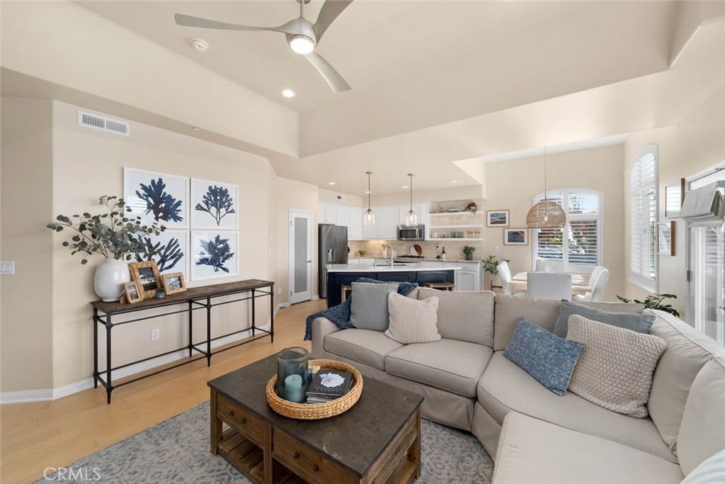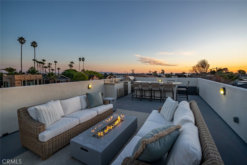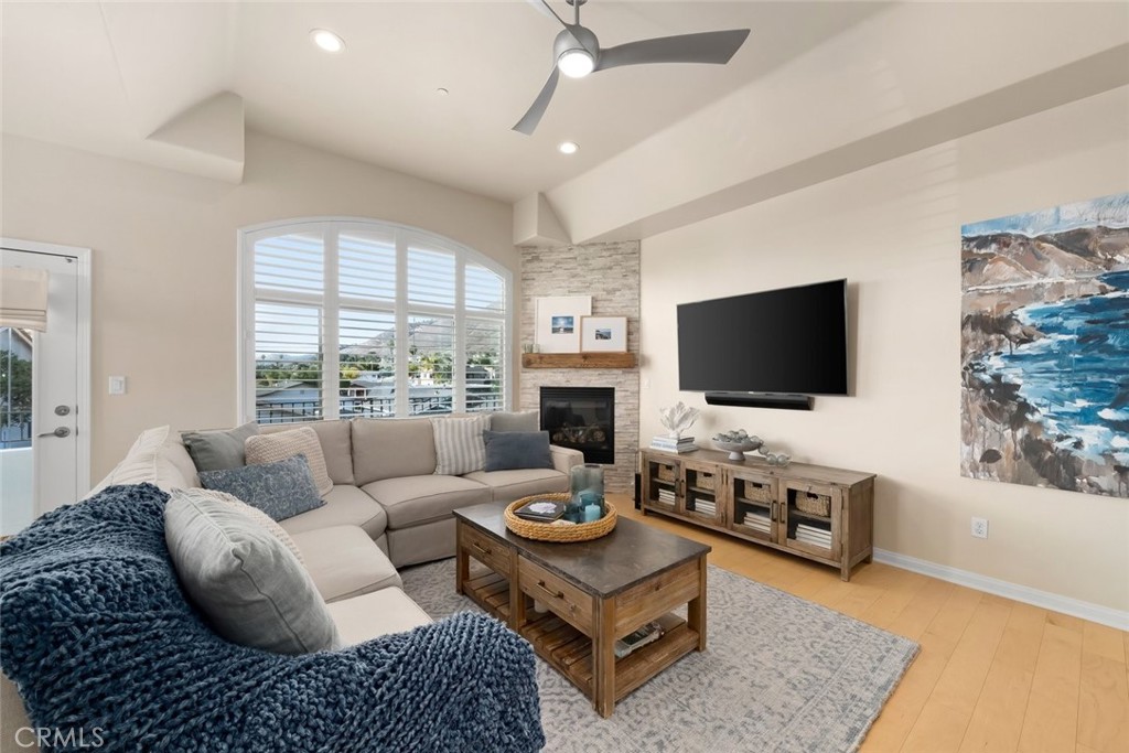 Welcome to coastal living in the heart of Shell Beach. This beautifully maintained 3 bedroom, 3.5 bath home offers a light-filled, flexible floor plan and exceptional indoor-outdoor spaces just moments from the ocean. The main level features an inviting covered entry, warm wood flooring, and a spacious bedroom with adjacent full bath—ideal for guests or single-level living. A second downstairs bedroom with closet is currently used as a home office, offering versatile space for guests, work, or hobbies. You’ll also find a convenient interior laundry room and access to a private side yard with outdoor shower, perfect after beach days. Upstairs, the bright open-concept living area showcases vaulted ceilings, plantation shutters, and a cozy fireplace with stone surround. The updated coastal kitchen is the heart of the home, featuring white cabinetry, stone countertops, tile backsplash, stainless appliances, gas cooktop, and a large island with seating. An adjacent dining area filled with natural light opens to a front balcony for morning coffee and ocean air. A convenient upstairs powder room serves the main living and entertaining areas. The spacious primary suite offers room for a sitting area and includes a spa-like bath with dual vanities, stone counters, walk-in tiled shower, and separate water closet. An additional upstairs bedroom features its own en suite bathroom and access to a private covered balcony, creating a comfortable retreat for guests or family. Multiple outdoor living spaces set this home apart. Exterior stairs lead to a spectacular rooftop deck designed for entertaining, complete with a built-in outdoor kitchen featuring a grill, stove top, refrigerator, sink, bar seating, and storage, along with lounge and fire-pit areas. Take in ocean views stretching from Avila Bay to Pismo, along with palm-lined neighborhood views, rolling hillside vistas, and stunning sunsets. Additional features include an indoor fire sprinkler system, a one-car garage equipped with a hard-wired electric vehicle charger, smart home thermostat, and a driveway that accommodates up to three additional vehicles. Boasting beautiful coastal curb appeal and low-maintenance landscaping, this home is ideally situated in a prime Shell Beach location just steps from beach access, shops, dining, parks, and coastal trails. This is truly Central Coast indoor-outdoor living at its finest!