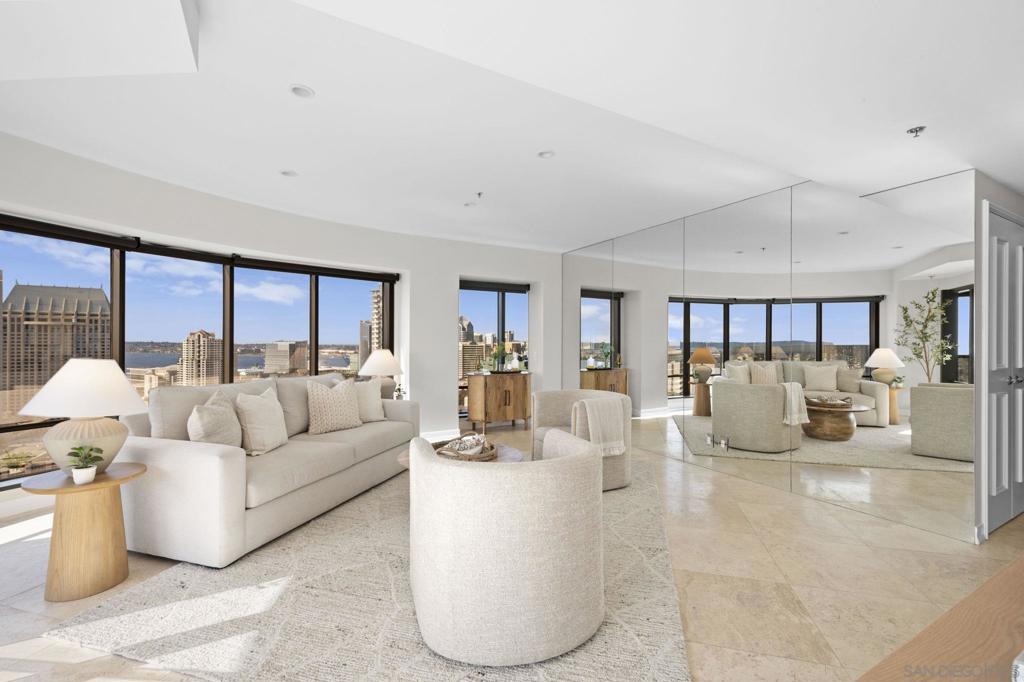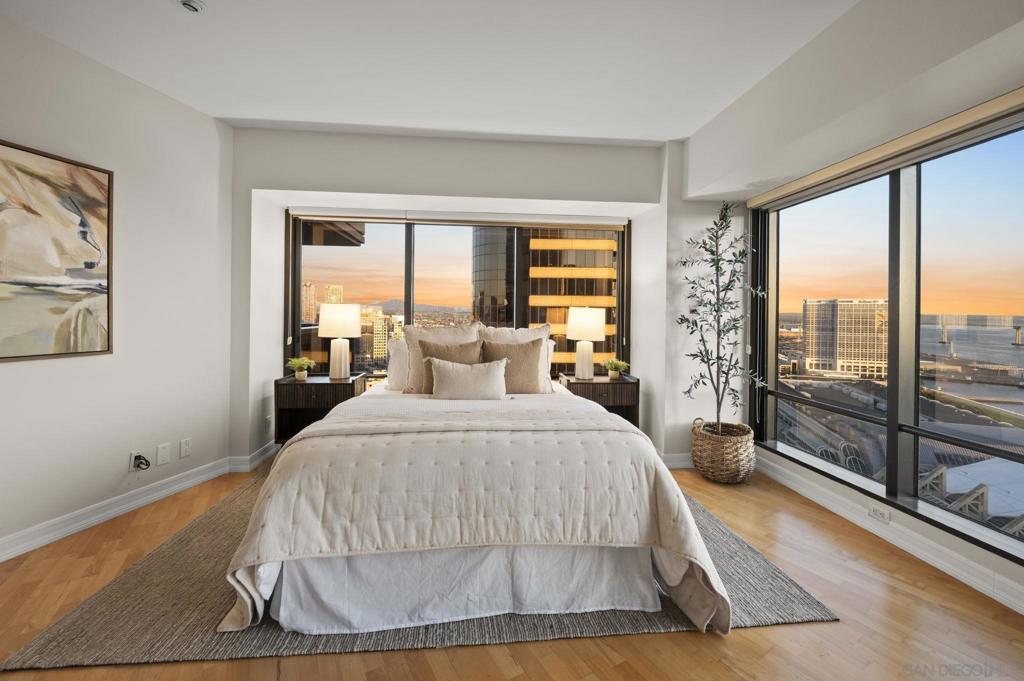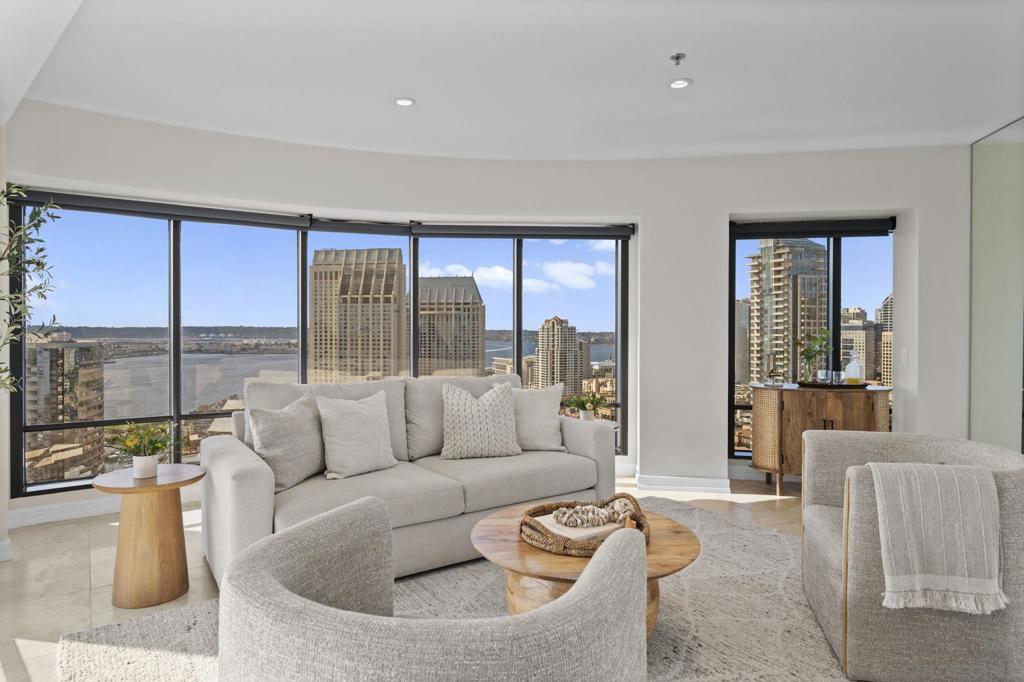 30th-floor bubble unit in the West Tower at the sought-after Harbor Club, featuring panoramic views of the Pacific Ocean, San Diego Bay, Downtown skyline, Coronado, and the Coronado Bridge. This 2-bedroom, 2-bath residence offers 1,474 sq ft of well appointed living space and a west-facing balcony with steady ocean breezes and sunset views. Harbor Club residents enjoy a full range of amenities including a heated lap pool, fitness center, sauna, club room, outdoor BBQ areas, and 24-hour front desk service. Two secured parking spaces included. Highly walkable location near the Gaslamp Quarter, Convention Center, Seaport Village, shopping, Petco Park, and the Downtown Marina.