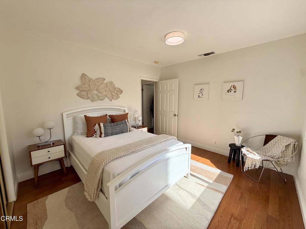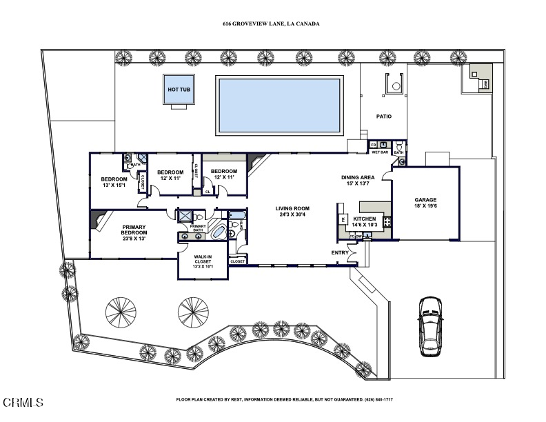Located at the end of a private cul-de-sac, this modern ranch-style home offers 4 bedrooms and 3.5 baths and hardwood floors throughout. Designed for both comfort and entertaining, the open-concept layout features an expansive Great Room with soaring cathedral ceilings, abundant natural light, and a cozy fireplace that flows seamlessly into the dining area and kitchen. The kitchen showcases natural stone countertops and Thermador and Bosch appliances. The primary bedroom provides a peaceful retreat with its own fireplace and a large walk-in closet. Sliding doors open to a private backyard with a newly refinished pebble-sheen pool, patio, fruit trees, grassy play space, and outdoor BBQ area. Located within the award-winning La Canada Unified School District.