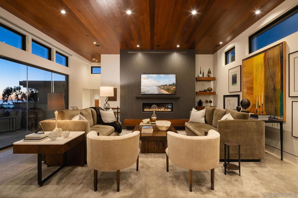 Set on a quiet, charming street in one of Del Mar’s most desirable coastal neighborhoods, 1970 Zapo is a custom-built modern residence that perfectly balances luxury, privacy, and an effortless lock-and-go lifestyle. Built in 2019, this 4 bedroom, 3.5 bath, 2,922 square foot home captures sweeping ocean views that feel equally special at sunrise and sunset, while remaining just a short walk to Del Mar’s beaches, The Del Mar Plaza, restaurants, and village amenities. Designed for both everyday comfort and refined entertaining, the main living level features an expansive great room framed by walls of glass bifold doors that seamlessly connect indoors and out. Rich Ipe wood ceilings and Gascon Blue limestone floors set a warm, contemporary tone, while the open floor plan allows the kitchen, dining, and living spaces to flow together with ease. The gourmet kitchen is a true centerpiece, appointed with Wolf appliances, a built-in cappuccino maker, dual Fisher & Paykel dishwashers, Sub-Zero refrigeration, Italian laminate cabinetry, and striking Taj Mahal quartzite countertops—equally suited for casual mornings or hosting at scale. The ocean-view primary suite offers a private retreat, complete with its own deck, a spa-like bath featuring a Jacuzzi soaking tub, double rain-head shower, and a generous walk-in closet with custom cabinetry. Downstairs, a thoughtfully designed guest wing includes three additional bedrooms and a spacious media room with wet bar, ideal for movie nights or extended stays. A temperature-controlled wine cellar with capacity for over 500 bottles adds a r A temperature-controlled wine cellar with capacity for over 500 bottles adds a refined touch for collectors and entertainers alike. Throughout the home, the quality of construction and attention to detail are immediately apparent, with custom cabinetry inserts, upgraded lighting, tailored drapery, enhanced HVAC filtration, and integrated smart features that make day-to-day living both comfortable and efficient. Outdoor spaces are equally inviting, with updated landscaping, a side yard with grass and ocean views perfect for relaxing or gardening, a fire pit, and a top-of-the-line spa for year-round enjoyment. Practical upgrades such as storm shutters, EV charging for two vehicles, and gated side access for privacy and pets further elevate the home’s functionality. Modern, private, and exceptionally easy to live in, 1970 Zapo offers a rare opportunity to enjoy contemporary coastal living in Del Mar—where panoramic ocean views, walkability, and refined design come together in a home that feels as luxurious as it is livable.