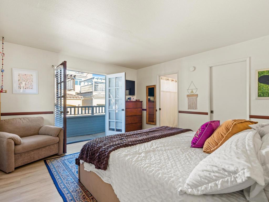 Enjoy coastal living in this North Pacific Beach townhome located just two blocks from La Jolla. The home features a private patio, two balconies, high beamed ceilings, and ocean views from select windows, along with a spacious garage with a dedicated laundry and storage room. The middle level offers bedrooms and two bathrooms, while the top floor showcases the kitchen, living and dining area, a large balcony, and a convenient half bath. Zoned for La Jolla Schools. Small Community of only features 4 homes, freshly painted exterior, well maintained. Low HOA of $4000/yr. HOA is made up of the homeowners and they meet yearly on site.