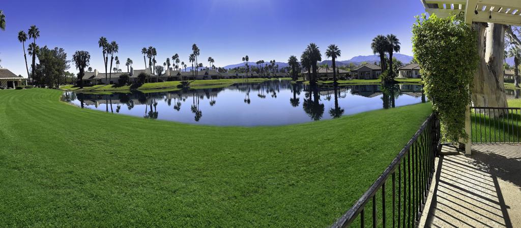 This is a winner! SOUTH-FACING FULL LAKE FRONTAGE CONTEMPORARY & JUST REMODELED! Stunning lake and panoramic Mountain views all around that take your breathe away! Walls of glass pour the views into every room! Perfect location inside prestigious Mission Hills Country Club This home features soaring vaulted wood ceilings, walls of glass, and seamless indoor/outdoor living. Enjoy three outdoor patios, including an expansive covered deck and waterfront, plus a wide adjacent greenbelt--offering exceptional privacy and dramatically expanded outdoor living you don't have to maintain. Move-in ready with chic finishes, incredible natural light, and the most desirable orientation in the desert. A rare offering for full-time living or an unforgettable seasonal retreat or seasonal rental income opportunity.
