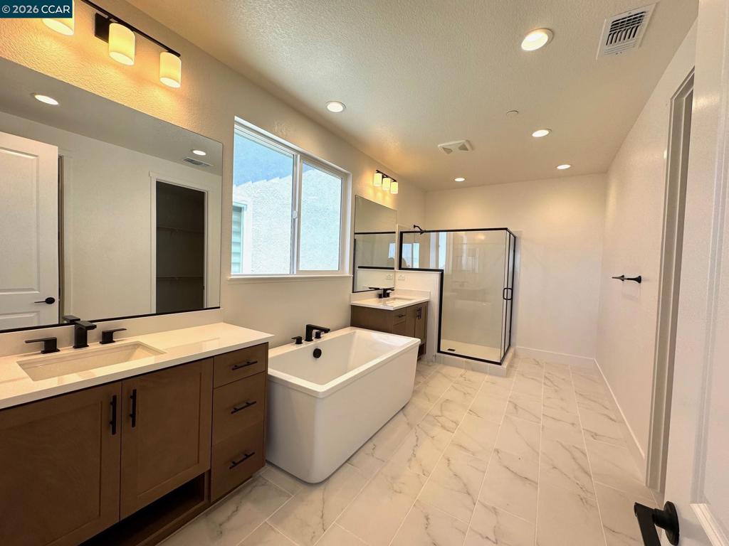 BRAND NEW North East facing 5 bedroom home at Capri is ready for move-in and priced for quick close! Home has been highly upgraded with incredible finishes and designer upgrades. NO REAR NEIGHBORS for added privacy and filled with luxury. Beautiful homes offers a view deck from the Primary bedroom that has a peek-a-boo view of the neighboring lake. Additionally, there is a 5th bedroom and full bath on the lower level- perfect for extended stay guests. Home also has a gourmet kitchen with large center Island, plenty of cabinets, built-in stainless appliances and large outdoor covered California Room with comfortable backyard for your enjoyment just steps from the lake. The upper level offers spacious bedrooms, laundry, loft and sumptuous Primary suite with oversized shower, freestanding soaking tub, walk-in closet. SOLAR and SMART features are FREE. Don't delay!