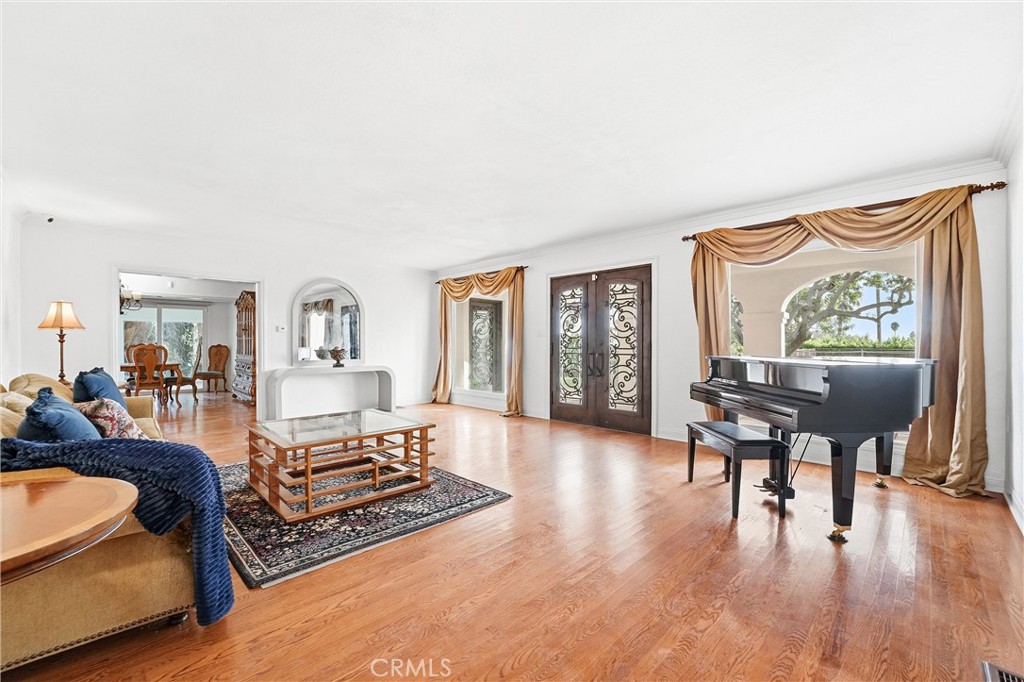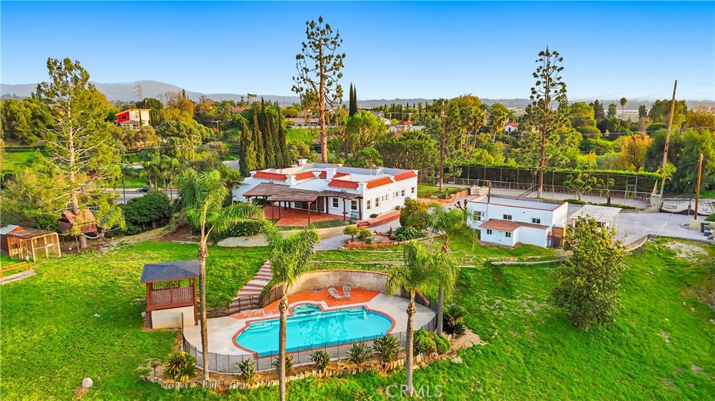 Welcome to 1847 Descanso Dr. in La Habra Heights. This classic 1920's Spanish home is situated on a flat 1.8-acre lot. This charming single-level residence features exceptional workmanship throughout, including hardwood floors and an updated family kitchen with an eating nook and plenty of windows that offer natural light. The home offers three bedrooms, two bathrooms, and a separate sunroom. The exterior features a pool, spa, gazebo, tennis court, and a separate sports court. The gated entrance leads to an abundance of parking finished with pavers. The remarkable grounds include almost 2 acres of useable land and a variety of fruit trees, including kumquat, orange, lemon, grapefruit, pomegranate, and figs. The home is impeccably maintained inside and out. You will find newer windows throughout and an upgraded modern kitchen with stainless steel appliances and granite countertops. The bathrooms have been updated with modern finishes, including a soaking tub, custom tile, and quartz countertops. All upgrades are carefully integrated with the Spanish style, starting with the iron doors and arched porch that greet you upon arrival. Located in a private setting with convenient access to Fullerton Rd, the property also includes a separate room off the garage that can be used as a workshop, gym, or office.