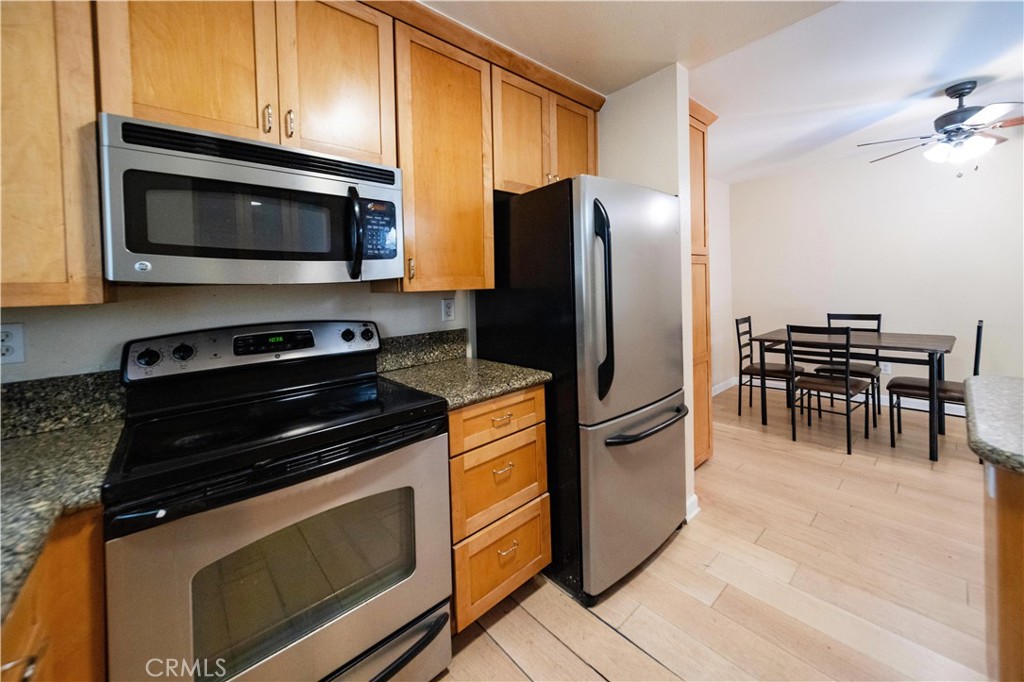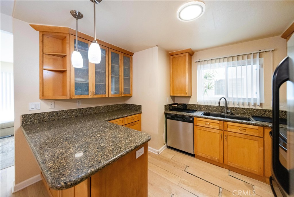 Beautifully updated ground-level condo with a private covered patio overlooking a tranquil greenbelt. Features include a remodeled kitchen with Silestone countertops, maple cabinetry, and stainless steel appliances, along with laminate flooring, fresh interior paint, dual-pane windows, and a cozy fireplace. Bright, functional layout with in-unit laundry and assigned parking. Moving-in ready and conveniently located near shopping, dining, and major freeways.