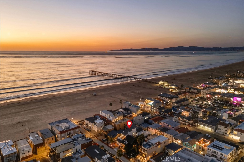 Welcome to this rare classic Hermosa Walkstreet home with an income unit, located just four houses from The Strand in the heart of Hermosa Beach. The remodeled front residence offers two bedrooms plus a third bedroom or office. A separate studio unit is located at the rear and is well suited for owner-users, extended family, or rental income. A spacious patio framed by mature landscaping and palm trees creates a welcoming outdoor setting for relaxing and entertaining. The main home is entered on the second level, where a generous ocean-view deck provides an ideal space for gatherings and sunset views. Inside, the residence has been updated with oak flooring, vaulted ceilings, and a fireplace serving the living and dining areas. French doors open to the ocean-view patio, allowing for easy indoor-outdoor living. The primary bedroom includes an en-suite remodeled bathroom. A second bedroom and an additional remodeled bathroom are also located on this level. The third level offers a spacious loft ideal for use as a third bedroom or flexible living area, complete with an attached half bath. Additional features include an extra bathroom off the garage and a bonus flex space or closet area. At the rear of the property is a separate studio unit with its own private entrance from 10th Court. This unit features vinyl flooring along with a remodeled kitchen and bathroom, making it well suited for guests, rental use, or extended family. The property features a private rear driveway accessed from 10th Court, complete with newly painted concrete and fresh landscaping. It offers parking for up to six vehicles, including a two-car garage and additional space for four cars in the driveway. Situated in the Sand Section near the beach, pier, and local dining, this Hermosa Beach duplex presents a rare opportunity to own a versatile coastal property in an exceptional location.