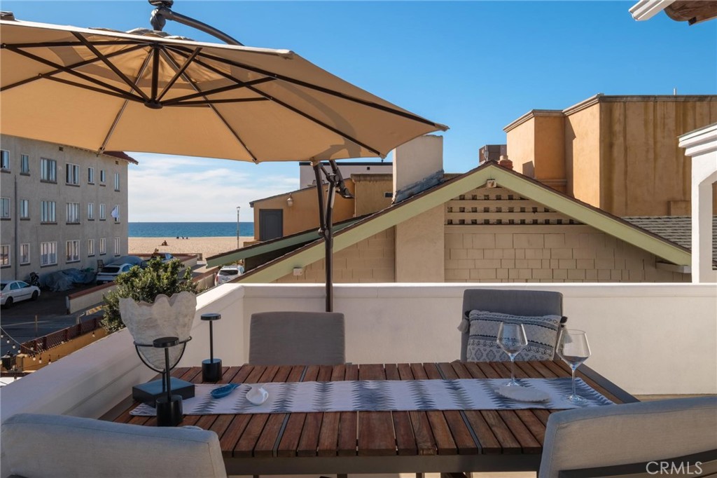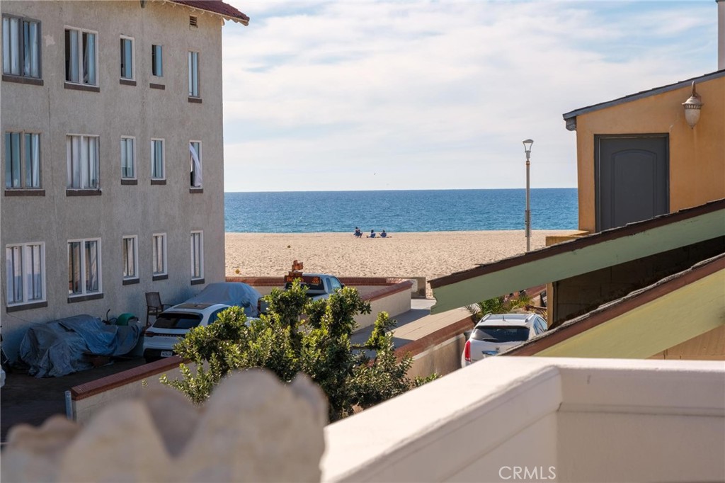 Welcome to this rare classic Hermosa Walkstreet duplex, located just four houses from The Strand in the heart of Hermosa Beach. The remodeled front residence offers two bedrooms plus a third bedroom or office. A separate studio unit is located at the rear and is well suited for owner-users, extended family, or rental income. A spacious patio framed by mature landscaping and palm trees creates a welcoming outdoor setting for relaxing and entertaining. The main home is entered on the second level, where a generous ocean-view deck provides an ideal space for gatherings and sunset views. Inside, the residence has been updated with oak flooring, vaulted ceilings, and a fireplace serving the living and dining areas. French doors open to the ocean-view patio, allowing for easy indoor-outdoor living. The primary bedroom includes an en-suite remodeled bathroom. A second bedroom and an additional remodeled bathroom are also located on this level. The third level offers a spacious loft ideal for use as a third bedroom or flexible living area, complete with an attached half bath. Additional features include an extra bathroom off the garage and a bonus flex space or closet area. At the rear of the property is a separate studio unit with its own private entrance from 10th Court. This unit features vinyl flooring along with a remodeled kitchen and bathroom, making it well suited for guests, rental use, or extended family. The property features a private rear driveway accessed from 10th Court, complete with newly painted concrete and fresh landscaping. It offers parking for up to six vehicles, including a two-car garage and additional space for four cars in the driveway. Situated in the Sand Section near the beach, pier, and local dining, this Hermosa Beach duplex presents a rare opportunity to own a versatile coastal property in an exceptional location.