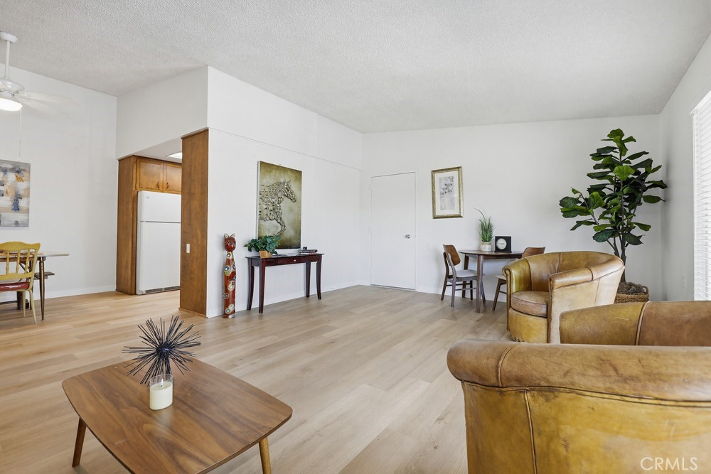Conveniently situated in a quiet location near the guard-gated main entrance this 2 bedroom, 2 bathroom condo has approximately 1000 sq ft of living space! The spacious living room with a huge slider offering loads of cheerful sunlight and refreshing ocean breezes. With the large covered balcony and the dining room, both adjacent to the living room, this space becomes idea for entertaining and holidays. The kitchen offers oven, stove-top, and refrigerator, plenty of storage and newer Formica counter space. The generous sized bedrooms are light filled and have large closets. Both bathrooms have showers and have been updated with new highboy toilets, heaters, counters, sinks and faucets. New vinyl windows and slider look great and are easy to operate. Fresh paint throughout and new luxury wood vinyl flooring & blinds contribute to this home’s pride of ownership. Stacker washer and dryer is in the unit. Leisure World Seal Beach is a 55+ community with lush greenbelts, loads of activities, including a Gym, Golf, Pool/Spa, and over 200 clubs and activities. This is an upstairs unit with the elevator & stairs located just outside the front door. Carport #61.