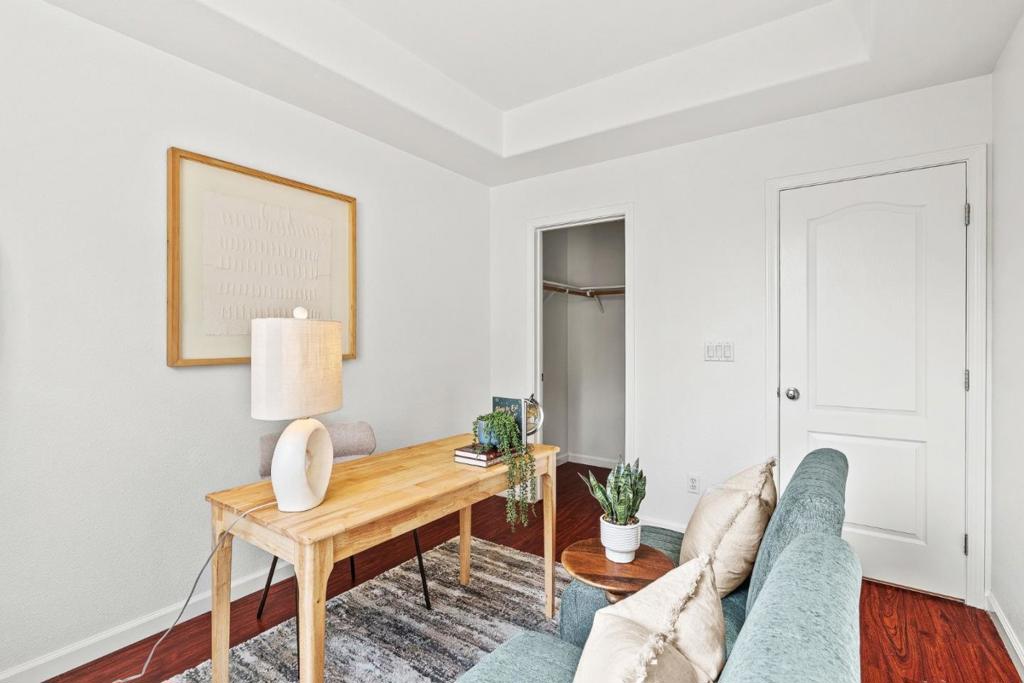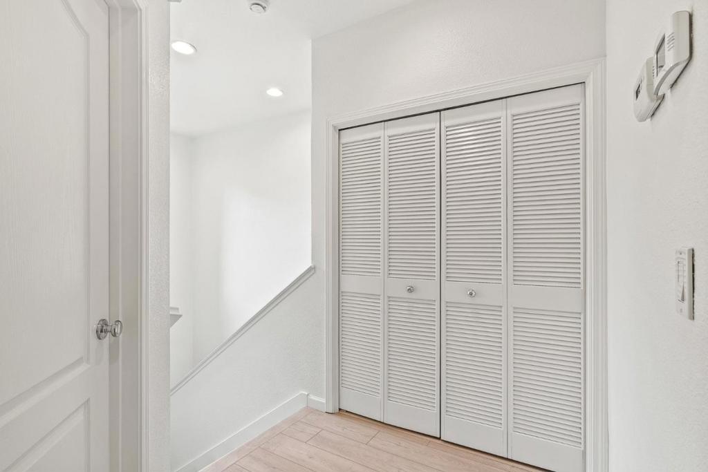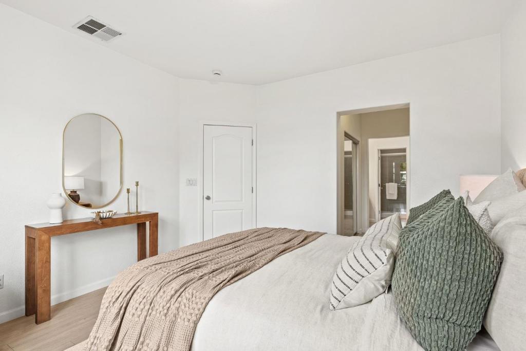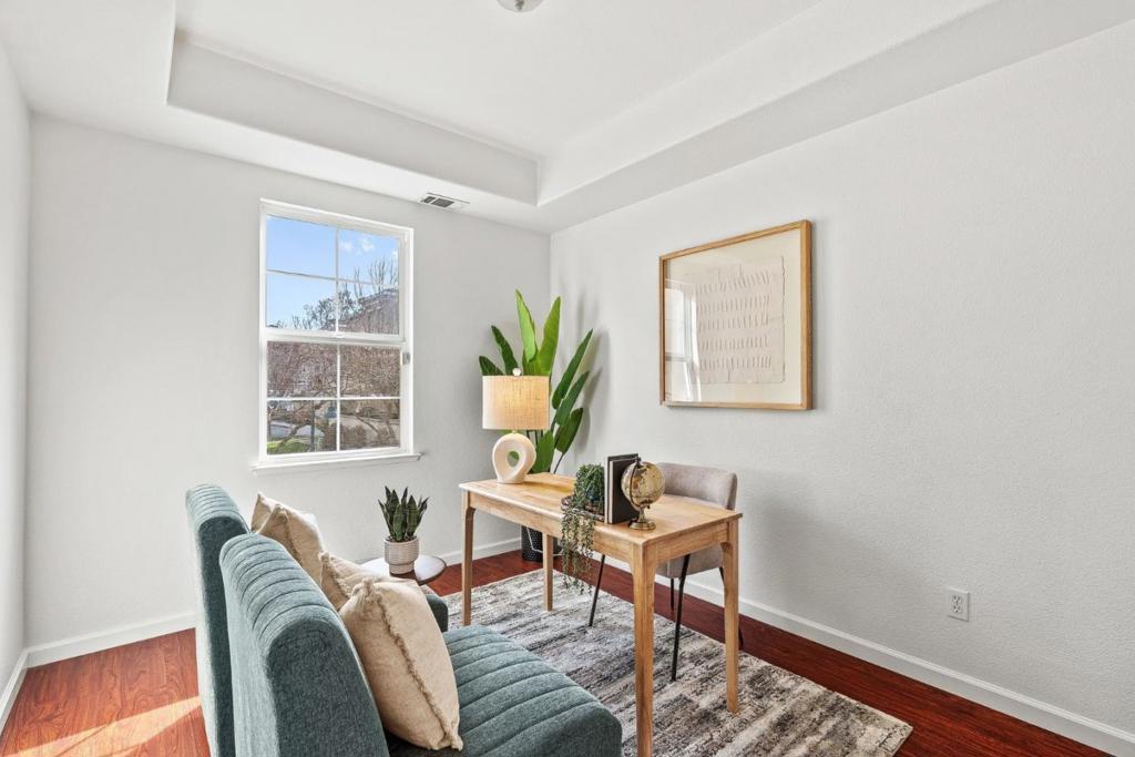 Located in the desirable Communications Hill neighborhood, this 3 bed 3 bath townhome offers 1,480 square feet of thoughtfully designed living space. The light filled interior features high ceilings & newer laminate flooring throughout. Floor plan is designed for both functionality & everyday living. The first level features the living room, & the main level includes the kitchen & dining area along with a full bedroom & full bathroom, ideal for guests or home office. The primary suite offers 2 spacious closets & an updated bathroom with dual vanities & newly renovated shower featuring fresh tile, new door, & shower pan. Junior suite with its own private bathroom & in unit laundry are also located on upper level. Brand new interior paint, refreshed light fixtures, & refinished kitchen & bathroom cabinetry give the home a clean, move-in ready feel. Side by side 2 car garage with additional storage space at the back, a private balcony for outdoor enjoyment, & access to community greenbelts & playground. Low HOA & dual pane windows. Quick access to Silicon Valley & Downtown San Jose, near Highways 87, 280, & 101. Short walk to VTA light rail. Close proximity to shopping centers, major tech employers, dining, & entertainment makes this home an exceptional blend of style, convenience.