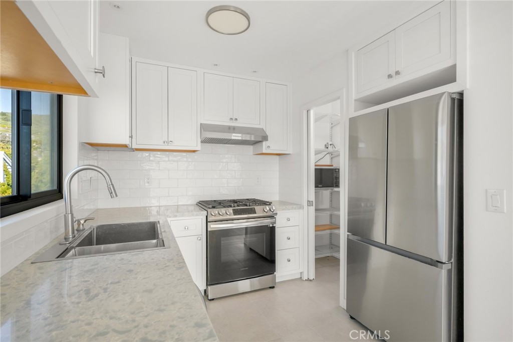 Nestled in the heart of North Laguna’s coveted Tree Streets, this fully remodeled 2-bedroom, 2-bath penthouse condo offers elevated coastal living just moments from downtown Laguna Beach and iconic Heisler Park. Thoughtfully redesigned with high-end finishes, the home features a sleek modern kitchen and beautifully renovated bathrooms with contemporary fixtures and spa-inspired rain showers. Warm wood-style flooring, a cozy fireplace, and overhead skylights create an inviting, light-filled living space, while ocean views from the living area, dining space, and private balcony capture Laguna’s signature coastal beauty. The primary suite includes a generously sized closet, and everyday conveniences such as an in-unit washer and dryer, dedicated storage, and one assigned parking space add ease. With beaches, boutiques, restaurants, and scenic coastal paths all within walking distance, this penthouse is an exceptional opportunity to enjoy the very best of Laguna Beach living.