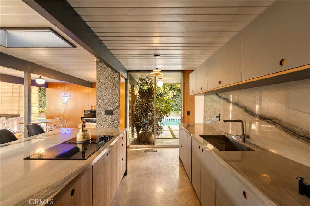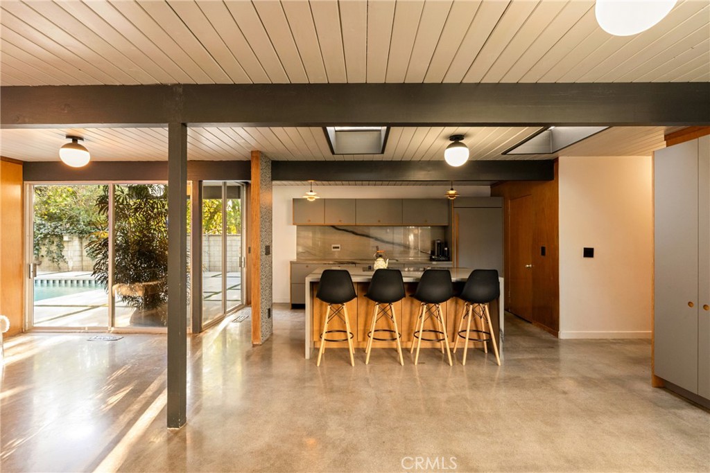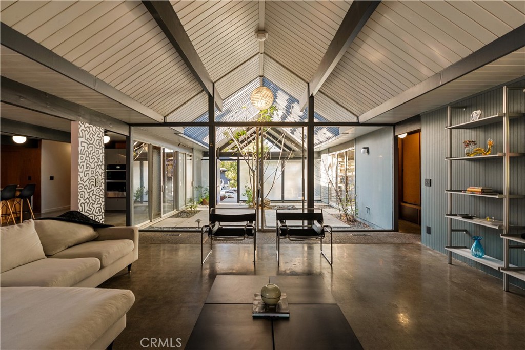 Designed by legendary architect A. Quincy Jones and built by visionary developer Joseph Eichler, this iconic mid-century home showcases the signature indoor-outdoor lifestyle that defines true California modernism—centered around Eichler’s hallmark central atrium, the architectural heart of the home. Welcome to 17136 Nanette Street, a beautifully reimagined Eichler residence nestled in the heart of iconic Granada Hills. This rare mid-century gem seamlessly blends timeless architectural integrity with thoughtful modern upgrades, offering five bedrooms and three bathrooms designed for effortless living and inspired entertaining. True to Eichler design, walls of glass flood the home with natural light while creating a seamless connection between interior spaces, the private atrium, and the outdoors. Clean lines, open living areas, and curated updates create a harmonious balance of form, function, and style. The backyard is a private sanctuary—featuring a sparkling pool framed by lush, mature trees that provide privacy, shade, and a serene, resort-like atmosphere. Whether hosting gatherings or enjoying quiet moments at home, the expansive outdoor space invites year-round enjoyment. Located in one of Granada Hills’ most desirable neighborhoods, this property offers the perfect blend of architectural significance, comfort, and Southern California lifestyle living. A rare opportunity to own a restored Eichler by A. Quincy Jones—this is Granada Hills living at its finest.