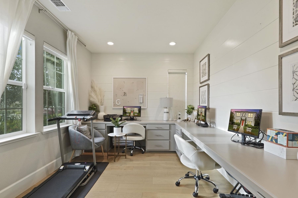 OWN THE FORMAL MODEL HOME! Skip the construction wait and move into this $150k-upgraded masterpiece. The Lifestyle You’ve Been Waiting For—Fully Loaded & Move-In Ready. Why wait for a custom build when you can own the neighborhood's "Gold Standard"? Located at 2885 Ellis Town Dr, this stunning former model home boasts over $150,000 in premium upgrades. Spanning 2,587 sq. ft., the interior features 4 spacious bedrooms, 3.5 designer baths, and a dedicated executive office. The chef’s kitchen is a showstopper, featuring a massive marble island, soft-close cabinetry, custom backsplash, and a walk-in pantry. Luxury vinyl flooring, designer lighting, and premium carpets flow throughout the open-concept layout. Key High-Value Features: Energy Efficiency: Fully PAID solar panels for significant utility savings. Turn-Key: Partially furnished with designer pieces, including sofa, dining set, and TVs. Outdoor Living: Professional landscaping, elegant accent lighting, and a signature California Room. Security & Storage: Full camera system and custom garage cabinetry included. Perfectly situated for commuters near I-580 and the ACE Train, and walking distance to top-rated schools and park is in front of the home .