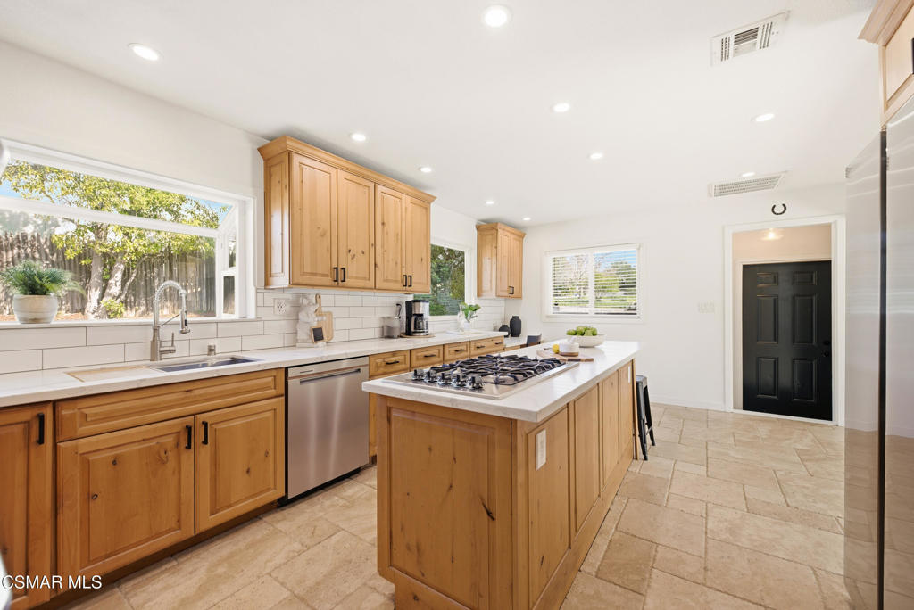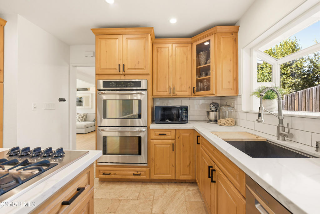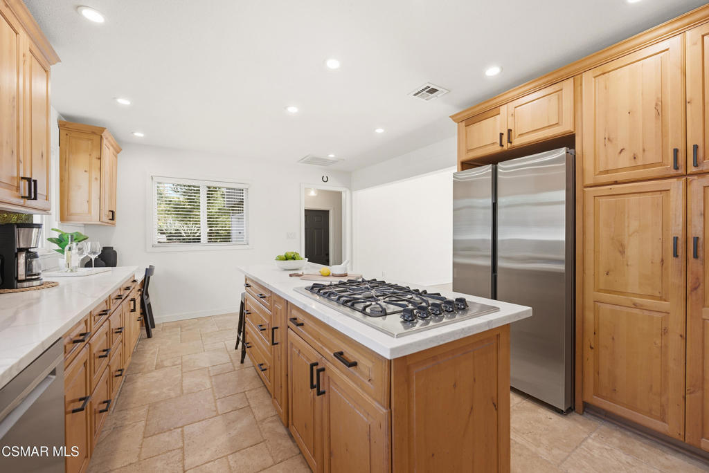Rare opportunity in highly sought-after Conejo Oaks in Thousand Oaks! This move-in ready single-family property with no HOA sits on an expansive, flat, usable lot with incredible potential for a pool, ADU, guest house, sport court, pickleball court, horse property, or custom backyard retreat.Designed to live like a single-story home, all bedrooms are located on the main level. The open-concept floor plan features an updated kitchen with quartz countertops, center island, stainless steel appliances, and seamless flow into the living room and family room with vaulted ceilings, exposed beams, and fireplace -- ideal for entertaining.The spacious primary suite offers direct backyard access and an ensuite bathroom with dual vanities, soaking tub, and separate shower. Two secondary bedrooms share a hall bathroom, plus an additional guest half bath with outdoor access -- perfect for future pool use.Upstairs above the attached garage is a versatile bonus room with half bath, ideal for a home theater, game room, office, gym, or playroom.Exterior highlights include a circular driveway, RV parking, boat parking, oversized driveway, detached rear garage/workshop, and multiple garage spaces. Plenty of room for toys, storage, and entertaining.Enjoy the charm and space of Conejo Oaks real estate with easy access to parks, trails, top-rated schools, shopping, and dining.A rare Thousand Oaks property offering space, flexibility, and future upside -- don't miss this large-lot opportunity!