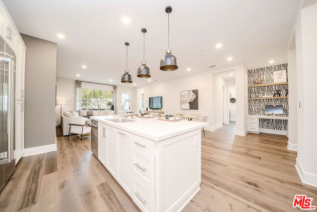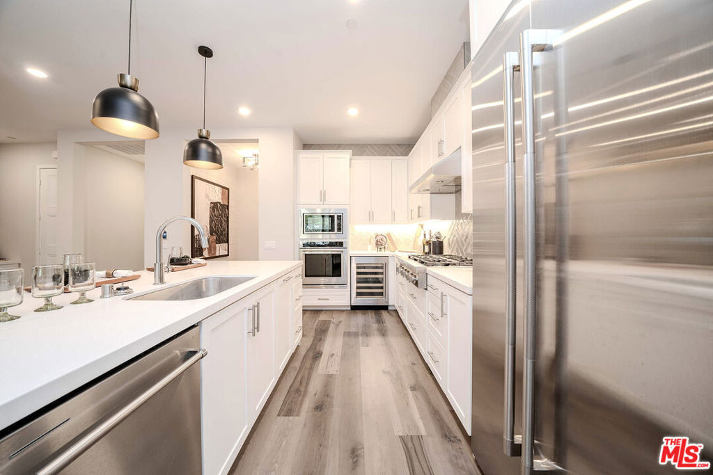BRAND NEW modeled luxury ground-level townhouse style condominium in the Los Coyotes Country Golf Club. This elegant, luxury, and unique style condo features spacious and bright 2 bedrooms with 2 well-decorated bathrooms, high ceiling, direct access private two-car garage, a separate laundry room, central air and heat, stylish Arizona Tile Della Terra quartz counter tops with 6" backsplash, custom engineered wood flooring, Kitchen Aid appliances including 36" Gas range top, commercial style hood, 30" built in oven, 24" dishwasher, stainless French door refrigerator, microwave, and wine cellar, Sonetto under-mount stainless steel single basin kitchen sink with Delta Essa single handle pull-out faucet, Arctic stainless food waste disposal, Whirlpool frontload washer & dryer, custom sofa, dining table, modern white kitchen cabinets, pre-wiring for electric vehicle charging station, custom decorations and more. Two spacious bedrooms come with the custom decorations, including modern ceiling lights, mattress frames, designer window coverings and blinds, a walk-in closet, custom blinds, and custom-designed painting. Moreover, the master bath comes with a quartz countertop, custom vanities, designed mirrors, frameless shower glass, Delta modern in polished chrome, and more. The home comes with a chef-inspired kitchen with an oversized island to gather and entertain, an open wide floor plan upon entrance, high ceiling with energy-efficient LED recessed ceiling lights, a tankless Rheem water heater, a home technology system features my commend smart home system including Butterfly door access, remote unit door access, lights, thermostats, water, and more. Also, the house comes with a private patio with exterior furniture and direct access to the community BBQ and recreation areas. The Los Coyotes Villas Community provides a private and gated community with 24 hr. security, Villas at Los Coyotes Country Club Dining membership, a paid off roof top solar panel system through SunPower Solar Company, a common recreation area including built-in BBQ, picnic tables, seating, and resort like gated golf course complex.