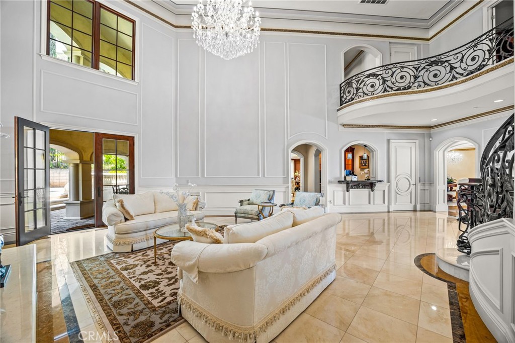 Indulge in the epitome of luxury living! Prepare to be captivated by this custom-built, European-inspired masterpiece, meticulously crafted in 2008 with meticulous attention to architectural design, premium materials, and flawless craftsmanship. Prepare to be awestruck by the breathtaking panoramic views of the majestic San Gabriel Mountains and the shimmering city lights that adorn the horizon. As you step through the custom glass and iron doors, the foyer unveils a world of opulence. The estate exudes grandeur, adorned with sparkling crystal chandeliers, exquisite marble floors, and ceilings that reach for the heavens. The state-of-the-art gourmet kitchen is a culinary enthusiast's dream, equipped with two distinct prep areas: a Chinese Wok Style and a Japanese Teppanyaki Seafood Bar, meticulously crafted in Germany. The first level of this palatial residence features a magnificent two-story circular library, an elegant formal living room with a cozy fireplace, a grand staircase that invites you to explore further, a family room with a fireplace to unwind in, a convenient laundry room, a bar area complete with a wine cooler, an elevator for seamless accessibility, a guest bathroom, a generously sized bedroom with an en-suite bathroom, and multiple patio areas beckoning you to bask in the serene ambiance. Among these outdoor spaces, one opens up to reveal a dazzling pool and spa, surrounded by majestic mountains that create an awe-inspiring backdrop. Ascending to the second floor, you will discover three stately bedrooms, each boasting its own bathroom adorned with jetted tubs for unparalleled relaxation. Expansive walk-in closets feature custom-built wooden organizers, catering to your every storage need. Private balconies offer a personal sanctuary, while a dedicated media room provides an immersive entertainment experience. For an unrivaled vantage point, step onto the magnificent covered balcony and revel in the awe-inspiring sunrises and sunsets that paint the sky in vibrant hues. Spanning across 6871 sqft of living space, this extraordinary estate accommodates four bedrooms and five bathrooms, ensuring ample room for your every desire. Resting on nearly 2.5 acres of land, this property truly presents a view from the top, allowing you to relish in the splendor of your surroundings. Don't miss the opportunity to experience luxury living at its finest.