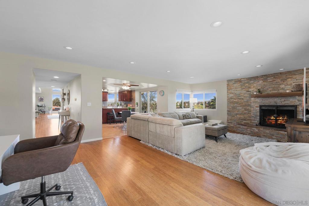 Situated within one of Fletcher Hills’ most desirable pockets, this 4 bed, 2.5 bath mid-century home captures stunning views and an airy, light-filled feel across 3,834 SF of living space on a 0.41-acre lot. Vaulted ceilings with exposed beams set the tone, while oversized rooms and walls of windows bring in natural light throughout the day. Three view decks extend the living space outdoors and capture sweeping neighborhood outlooks. The kitchen is finished with granite counters, stainless appliances, and a dedicated wine fridge. Bamboo flooring and custom ironwork blend classic style with modern comfort. Select updates include refreshed paint in the lower-level room, improved ventilation, and updated fixtures in portions of the baths. The backyard has been thoughtfully improved with newly installed Hollywood hedges along both sides of the property for added privacy. Olive, magnolia, and Australian willow trees complement the landscape, along with newly planted fruit trees. A pergola was added to the rear patio, and irrigation and drainage systems were upgraded. Located in the highly desirable Fletcher Hills neighborhood of El Cajon, this home offers a peaceful suburban atmosphere with tree-lined streets and scenic hillside views. Residents enjoy easy access to nearby parks and local amenities, all just a short drive from downtown San Diego. With no HOA and owned solar, the property offers flexibility, efficiency, and long term value!