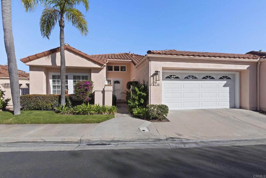 Pride of ownership is apparent from the moment you walk into this home. A bright, open, & spacious kitchen features sliding glass doors that open directly to an elevated wraparound patio with sweeping views of the mountains, lake and neighborhood below. The smart floor plan makes this condo live like a single-family home, boasting 2 generous bedrooms and "fairy tale" garage loft.. Warm wood floors flow through the main living areas. The attached 2-car garage with laundry add everyday convenience. This home is truly move-in ready, while still offering the opportunity to customize to suit your vision. The HOA covers the roof, exterior paint, pest control, front landscaping, & 24-hour security. Enjoy resort-style living in Lake San Marcos with lake access, scenic walking paths, boating, fishing, & a waterfront lodge offering dining, pool, fitness, & year-round social activities.
