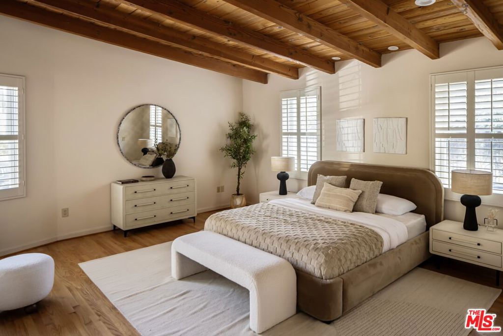 EXCEPTIONAL VALUE IN PRIME CHEVIOT HILLS. This spacious traditional home is filled with natural light and set on a large lot with mature landscaping, offering privacy, great scale, and flexible living spaces. The home features 7 bedrooms and 7 bathrooms with an excellent layout, including three bedrooms on the main level and four bedrooms upstairs. A welcoming entry showcases a beautiful custom mosaic detail in the flooring. The well-appointed kitchen includes granite countertops, double ovens, ample cabinetry, a large center island with seating, a breakfast nook, and a high ceiling with a skylight that fills the space with natural light. The living, family, and dining rooms all feature beamed ceilings, with a fireplace in the living room, creating warm and inviting spaces ideal for both everyday living and entertaining. Upstairs, the primary suite offers dual walk-in closets and a spa-like bathroom with double vanities, abundant natural light, a soaking tub, and a steam shower. Three additional ensuite bedrooms and a large bonus area complete the second level. The private backyard features a covered patio ideal for outdoor dining and entertaining, along with generous yard space. Additional highlights include a 2-car garage and abundant storage throughout. A well-scaled home with excellent natural light, privacy, and versatility, offering one of the best values in Cheviot Hills.