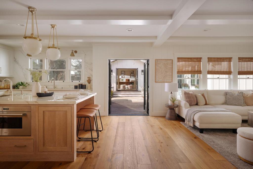 Welcome to this stunning Los Gatos home blending modern luxury, comfort, and award-winning design. A charming Dutch front door and skylit entry invite you into a beautifully designed floor plan featuring a chefs kitchen with Wolf, Sub-Zero & Cove appliances, oversized island, custom Rutt cabinetry, and hidden details throughout. The spacious great room, dining, and living areas flow seamlessly to a private courtyard oasis; perfect for entertaining. Enjoy an outdoor kitchen with DCS grill, deck, hardscape lounge with fire table, and serene nature zone beneath a majestic oak tree. Owned solar, new dual-zone HVAC, whole-home water conditioner system, wired for Dolby Atmos, built-in Murphy Bed and epoxy garage with EV charger. The luxurious primary suite offers a curbless shower and walk-in closet. The 2023 Design Matters award-winning ADU (605 sq ft) features 1 bed, 1 bath, full kitchen with accordion doors opening to the backyard, designer finishes, and sound-reducing construction; an ideal guest retreat or income opportunity. Permit only street parking ensures a quiet and private street while only feet from downtown. Located two blocks to Salt & Straw; self discipline required.
