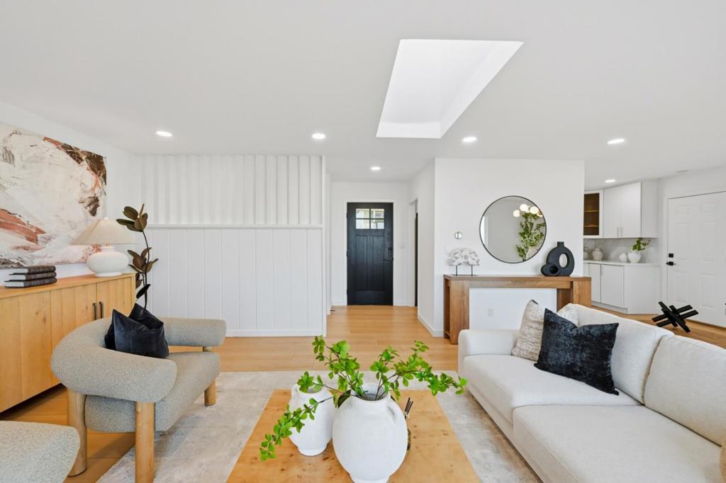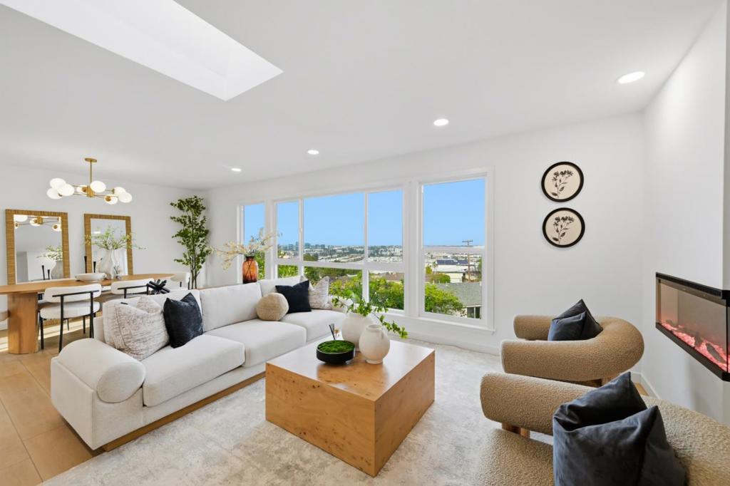 Extensively remodeled 4-bedroom, 3-bathroom home with a dedicated office, offering a flexible and functional floor plan. Recent upgrades include a newer electrical panel, fully remodeled kitchen and bathrooms, updated furnace and ductwork, recently installed insulation, and all-new windows throughout. The main level features three bedrooms and two bathrooms, including a newly added primary bathroom finished with Porcelanosa tile. The updated kitchen offers slim shaker cabinetry, quartz countertops, and smart appliances. Bright living spaces showcase quality finishes and abundant natural light. The lower level provides additional living space with a secondary family room, fourth bedroom, private office, and a full bathroom, ideal for guests, work-from-home, or multi-generational living. Outdoor amenities include a rare oversized deck with an outdoor movie projector, an additional viewing deck with Bay water views, and decking and fencing constructed with a combination of composite materials and solid wood. Low-maintenance artificial turf, decorative stepping stones, and landscaped grounds complete the exterior. Located in a top-rated school district, this move-in-ready home offers comfort, versatility, and convenience in a highly desirable Peninsula location.