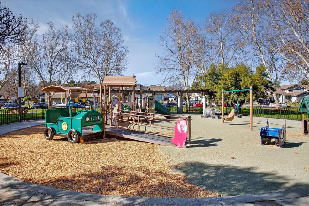 Perfectly positioned facing Coy Park, this freshly updated residence offers a rare blend of green space views, neighborhood charm, a low-maintenance lifestyle, and move-in ready comfort. Set within a quiet, tree-lined enclave, the home enjoys a front-row seat to playground greens, open lawns, and a welcoming community atmosphere rarely found in condo living. A wood-paneled and brick exterior adds warmth and character, while a level lawn and mature pomelo tree create an inviting approach to the front door. Inside, the layout is thoughtfully arranged with the main living spaces oriented toward the park, filling the home with natural light and pleasant outlooks. New wide plank floors, fresh interior paint, updated fixtures, and recessed lighting create a clean, modern feel throughout. The living and dining areas flow seamlessly into the kitchen, while the bedrooms are tucked quietly behind for privacy. With nearby laundry, dedicated storage, nearby community pool, and a detached one-car garage, this home delivers both everyday convenience and an exceptional setting in a charming, family-friendly pocket of San Jose steps from Oak Grove High School.