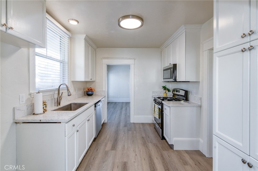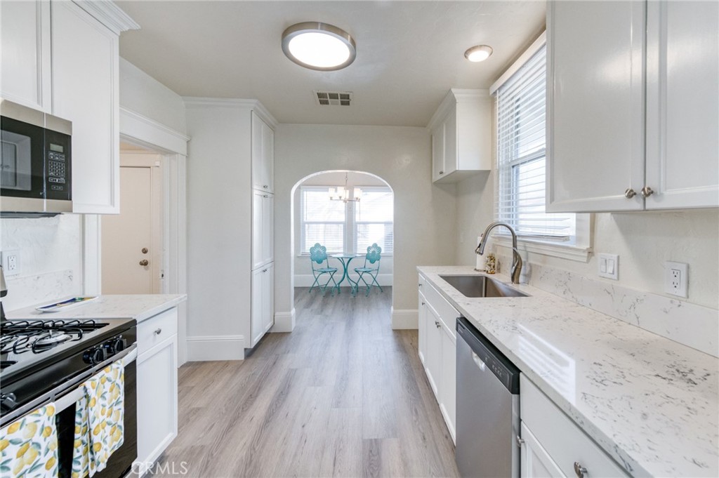 Experience exceptional living in this completely remodeled and updated home minutes from Van Ness. This home features 3 spacious bedrooms and 1 bath, inside laundry room, breakfast nook and formal dining room. The grand formal living room with large fireplace flows into the dining room. The kitchen has all new cabinets, counters, appliances and light fixtures. The home has been redashed on the exterior, a new roof installed and Brand New front drought tolerant landscape for easy care. The interior has been completely painted with new hardware and light fixtures. Out back you have a concrete area, grassy area and the detached garage. The long driveway with new rolling gate adds extra privacy and room for multiple vehicles to park.