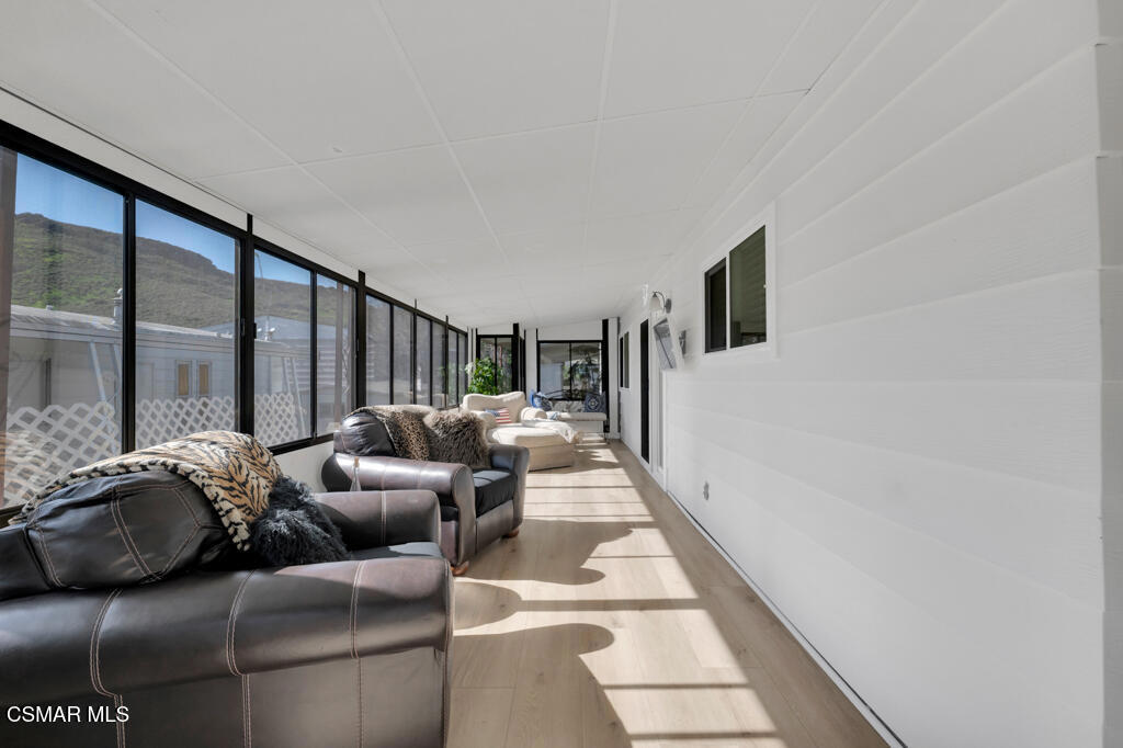 Located in the well-established Vallecito 55+ gated community, 68 La Palma offers serene, low-maintenance living in the heart of Newbury Park--with no property taxes and access to wonderful community amenities.This single-story, 1,681 sq. ft. home has been fully updated and features beautiful newer vinyl flooring throughout, smooth ceilings, upgraded baseboards, designer paint tones, recessed lighting, and dual-pane windows installed in 2022 throughout the home (excluding the enclosed porch). The open, light-filled floor plan creates a seamless flow between the living, kitchen dining, and dining areas, ideal for both everyday living and entertaining.The updated kitchen showcases modern finishes including quartz countertops, a stainless refrigerator, generous cabinetry, a center island with gas cooktop and included stylish kitchen island bar stools! The adjacent dining room is highlighted by a skylight that fills the space with natural light.The fully enclosed porch, complete with matching flooring and a mounted TV, creates a perfect space for entertaining and enjoying the California lifestyle. The home also features a convenient indoor laundry area with a full-size washer and dryer.The primary suite offers a comfortable space with a nicely sized bedroom with dual closets and a beautifully updated en-suite bathroom featuring a large walk-in shower and linen storage. The second bedroom, ideal for guests or a multi-use space, includes a queen-size Murphy bed and is paired with a second updated bathroom featuring a tub/shower combination--perfect for flexibility and convenience.Outdoor living is equally impressive, featuring artificial turf, irrigation, and well-maintained landscaping. A charming vineyard with a variety of grape vines and a mature Meyer lemon tree create a peaceful and unique outdoor retreat. The exterior has been thoughtfully enhanced with updated siding and stacked-stone accents, refreshed front steps and stonework, a retaining wall, widened driveway improvements, and an updated carport with new skirting.Major system upgrades include a new furnace and air conditioning, roof repairs, and numerous interior and exterior improvements--providing peace of mind for years to come.Vallecito Mobile Home Park is a well-maintained, gated community offering a pool, spa, clubhouse, gym, BBQ area, putting green, a community dog run, and a library--designed for active and social living. Residents enjoy access to a gated entry, and a friendly, walkable neighborhood, conveniently located near shopping, dining, parks, and local trails.This move-in-ready and well-cared for home offers comfort, style, and ease of living in one of Newbury Park's most desirable 55+ communities.