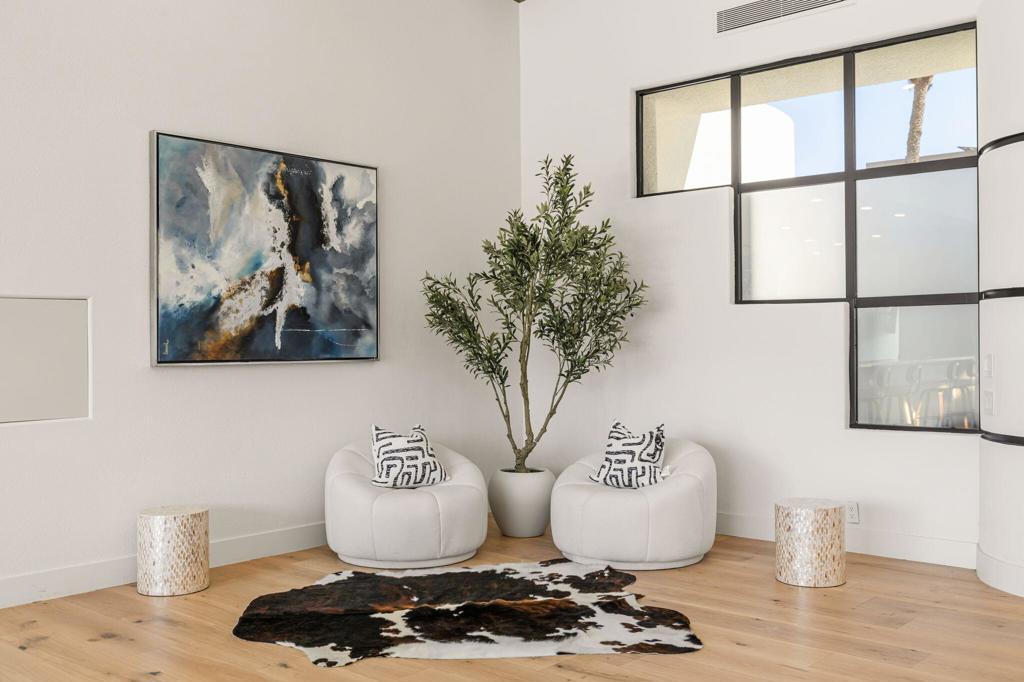Set high within the gates of Mirada Estates, 36 Mirada Circle is a quietly spectacular home designed to feel as good as it looks. This residence was completely reimagined as a soft modern retreat where natural materials, clean lines, and light-filled spaces come together in balance.From the moment you enter, the home opens wide. Eighteen-foot ceilings with exposed wood beams, wide-plank white oak floors, and walls of glass create an immediate sense of calm and scale. The views stretch across the valley toward the San Jacinto Mountains and shift beautifully throughout the day and evening. From the living room, you can even watch planes glide into Palm Springs, a subtle reminder of just how elevated this setting truly is.At the heart of the home, a 25-foot pocket sliding door disappears completely into the wall, allowing indoor and outdoor living to flow as one. Living, dining, and entertaining spaces open effortlessly to the exterior where evenings are spent poolside, fires lit, and the valley glowing below.The kitchen is both striking and inviting, designed for gathering, lingering and cooking with ease. A walk in panty keeps everything beautifully tucked away, while a custom, backlit bar anchors the space with warmth, texture and a sense of quiet drama. The home offers five en suite bedrooms and six baths, including a private casita ideal for guests, extended family, or a home office. Each suite feels calm and intentional, with spa-inspired bathrooms and refined finishes throughout.The primary suite is a true retreat. Wrapped in floor-to-ceiling stone, the bathroom evokes the feeling of a personal spa with a freestanding jetted tub, walk-in shower, private sauna, and two generous walk-in closets with custom built-ins.Outdoors, the home lives like a private resort. Expansive terraces, a pool and spa, fire features & outdoor dining areas are positioned to take in the views and desert sky. Whether hosting a gathering or enjoying a quiet morning coffee, the setting feels effortless and serene.Mirada Estates is a 24-hour guard-gated community with the rare advantage of neighboring The Ritz-Carlton, Rancho Mirage. Residents enjoy preferred access & discounts to dining, spa, fitness, and hotel services, bringing five-star amenities into everyday life.This is a home created with intention. Elevated, warm, and deeply livable. A place that feels just as special on a quiet Tuesday as it does on a celebratory weekend.