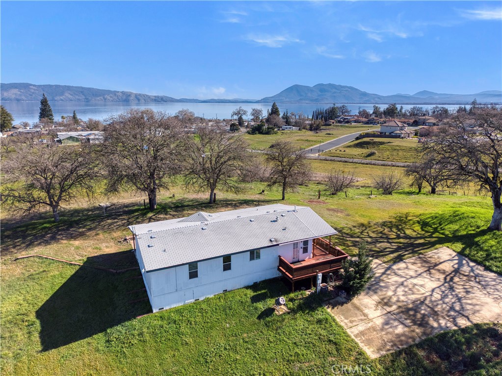 Set on nearly 2 acres in North Lakeport, this peaceful retreat captures sweeping views of Clear Lake and Mount Konocti while offering the space and flexibility everyone craves. Tucked away on a quiet cul-de-sac, the setting feels wonderfully rural—yet you’re just minutes from town, the lake, boat launch, parks, and shopping. The 3-bedroom, 2-bath manufactured home is designed to soak in the scenery, with a wraparound deck and covered porch perfect for morning coffee, sunset watching, or hot tubing under the stars. Inside, the open kitchen features newer appliances, including a propane range and stainless steel refrigerator, and flows easily into the dining and living areas—where lake views take center stage. The primary bedroom offers a private bath and comfortable retreat, while central heat and air keep the home comfortable year-round. Outside is where the possibilities really open up. The expansive 1.98-acre parcel provides ample room to add an ADU, garage, workshop, or create space for animals, gardens, or hobby farming—or simply enjoy wide-open space and privacy. Whether you’re looking for a full-time home, weekend getaway, or property with room to grow, this one delivers views, versatility, and a location that’s hard to beat.