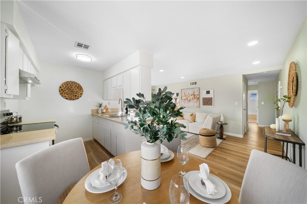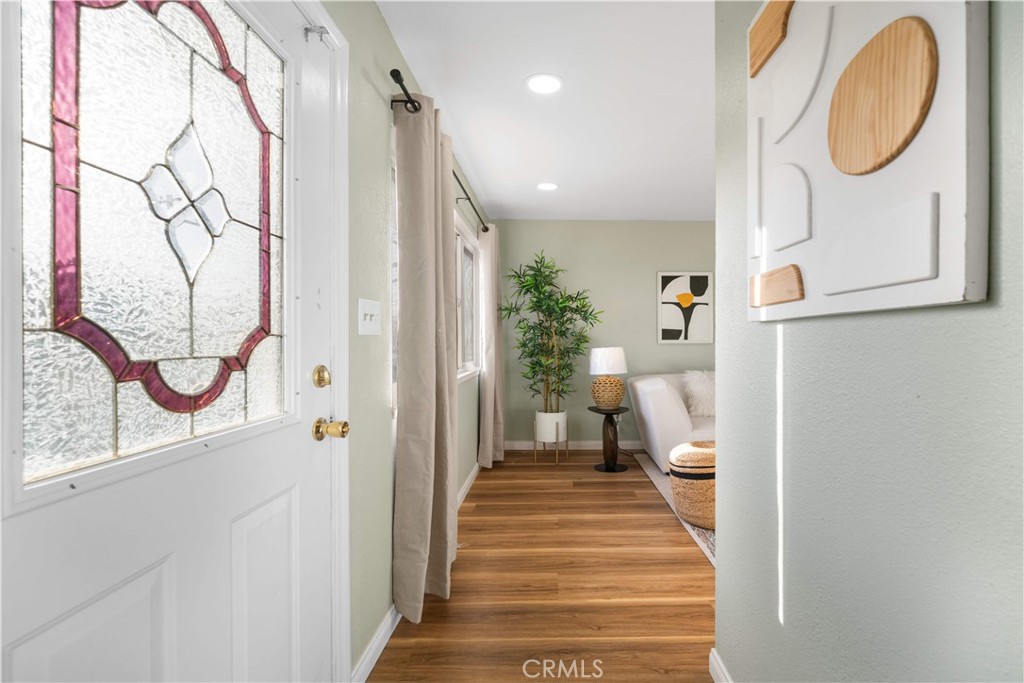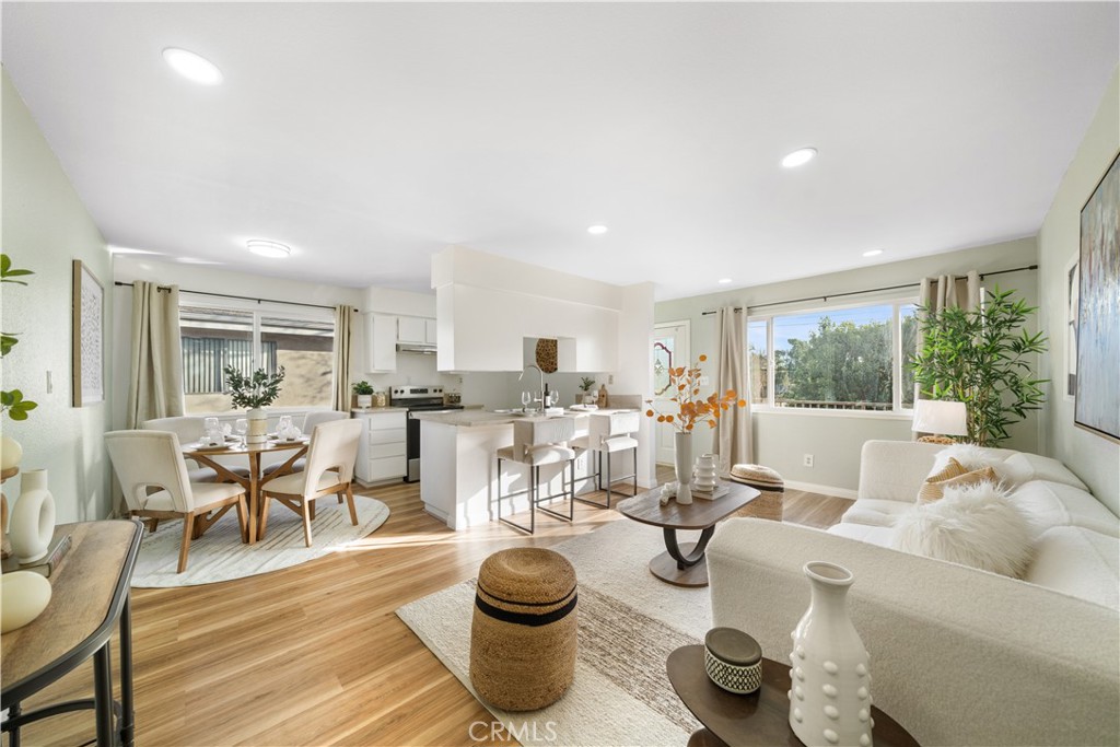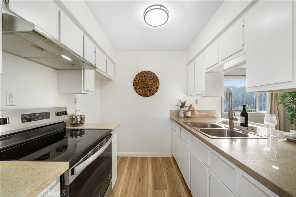 Welcome to this charming remodeled 2-bedroom, 1-bath, single-story end-unit condo located in the highly desirable Villa La Verne community. Tucked away in a peaceful setting surrounded by lush greenbelts, this home offers both comfort and privacy in a prime La Verne location. Step inside to a bright living space featuring new waterproof laminate flooring, new recessed lighting, and fresh interior paint throughout. The updated kitchen shines with new quartz countertops, new sink, pull-down faucet, new stove, and new range hood, creating a clean, modern space ideal for everyday living. The spacious bathroom has been remodeled with new tile flooring, new sink, light fixture. Residents enjoy a well-maintained community with resort-style amenities, including multiple pools and scenic walking paths. HOA covers water, sewer, trash, exterior maintenance, and master insurance, offering low-maintenance living style. This unit includes one shared garage parking and one driveway parking space, and ample guest parking nearby. Each building features a shared laundry room for added convenience. Located within the high-rated Bonita Unified School District. Las Flores Park is just steps away and offers tennis courts, pickleball courts, playground, and the La Verne Aquatics Center. Also only a few minutes from the University of La Verne, Old Town La Verne shops and restaurants. It is the home ready for you to move in and enjoy!