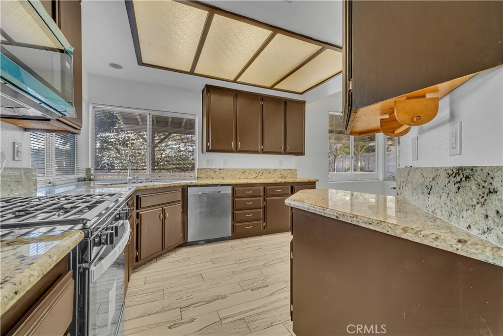 Welcome to this impeccably maintained, turnkey residence located in a peaceful and established pocket of Palmdale. From the moment you pull up to the oversized driveway, the home’s striking curb appeal—complemented by lush, mature landscaping and a spacious three-car garage—sets the stage for what lies inside. Step through the double-door entry to find an expansive living space defined by soaring vaulted ceilings and large windows that bathe the home in natural light. The interior features a designer-inspired palette with fresh neutral paint and updated flooring throughout, including sleek tile and plush carpeting that lead you into a chef-ready kitchen. Outfitted with elegant granite countertops, ample cabinetry and a new range and microwave, the kitchen flows seamlessly into the family room, where a classic fireplace serves as the perfect centerpiece for cozy high-desert evenings.The upper level offers a serene master sanctuary, complete with vaulted ceilings, a generous walk-in closet, and a private en-suite bath featuring dual sinks and a separate soaking tub and shower. While the interior is impressive, the outdoor space is a true showstopper. Situated on a massive 0.36-acre lot, the backyard is a private oasis fully enclosed by durable block walls. It provides unparalleled utility with substantial RV access, offering plenty of room for a motorhome, boat, or seasonal toys, or a possible future ADU or Swimming pool. Home features leased Solar that includes a Tesla battery at only $138 per month. Best of all, this property offers the ultimate freedom of homeownership with no HOA fees. Perfectly positioned for easy commuting via the 14 Freeway and Pearblossom Highway, this home offers the space, privacy, and modern updates you’ve been searching for.
