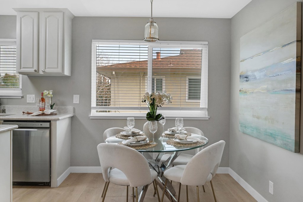 Step into this thoughtfully updated upper-level, 2-bedroom, 1-bath home offering a bright and inviting space. Sun-filled rooms and an open floor plan create a warm atmosphere, enhanced by fresh interior paint, new vinyl flooring, new appliances, dual-pane windows, recessed lighting, and new light fixtures throughout. The dining area offers a serene glimpse of the mountains to start your day. Residents can enjoy the community pool, a highly rated elementary school nearby, and easy access to the Alameda Creek Trail for outdoor recreation. Ideally located minutes from Quarry Lakes, Union Landing, BART, with easy access to I-880 and Dumbarton Bridge, this move-in-ready home is a true gem in a vibrant and convenient location.