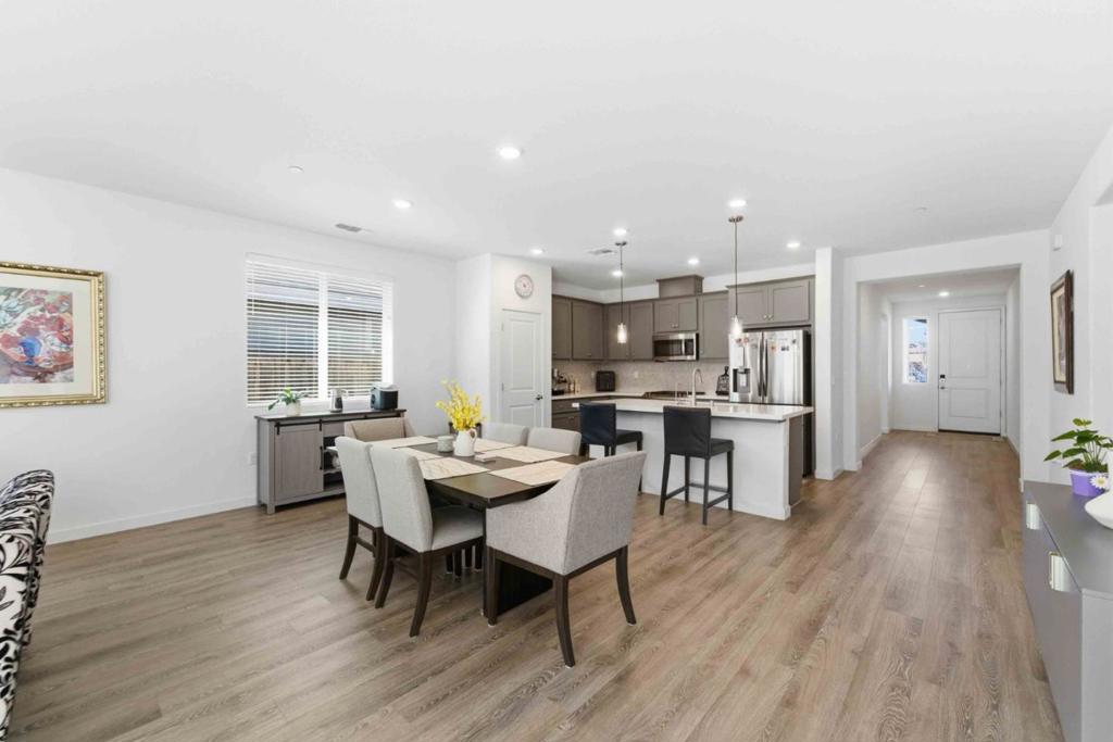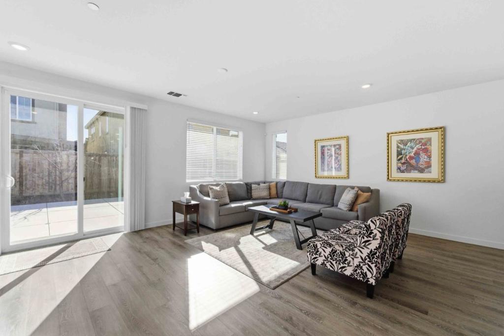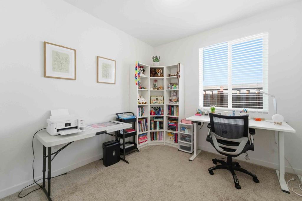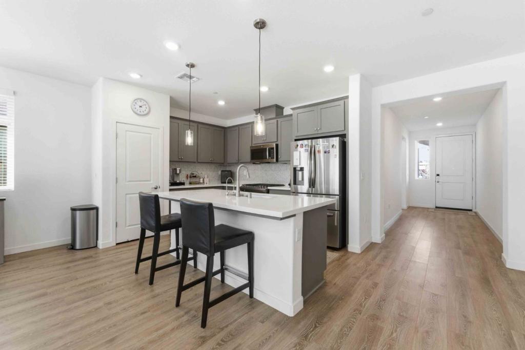 Beautifully maintained Taylor Morrisonbuilt home (2022) offering 4 bedrooms and 2 bathrooms with 1,948 sq ft of living space on a 5,638 sq ft lot, thoughtfully designed for modern living. All bedrooms feature plush carpeting, while the hallway, living room, and kitchen showcase luxury vinyl plank flooring for both style and durability. The spacious primary suite is a true retreat, complete with a large walk-in closet and an impressive walk-in super shower. The upgraded kitchen is designed to impress with enhanced cabinetry, stylish backsplash, upgraded appliances, a single-basin stainless steel sink, Moen MotionSense Wave touchless faucet, and an undercounter water filtration systemperfect for everyday convenience and entertaining. Additional highlights include a solar panel system for energy efficiency, Honeywell Wi-Fi thermostat, Ring alarm system, and Ring front door camera for added comfort and peace of mind. The backyard and side yard are beautifully landscaped with fruit trees, creating a serene outdoor space to relax and enjoy. This newer construction home blends comfort, functionality, and thoughtful upgradesmove-in ready and beautifully maintained.