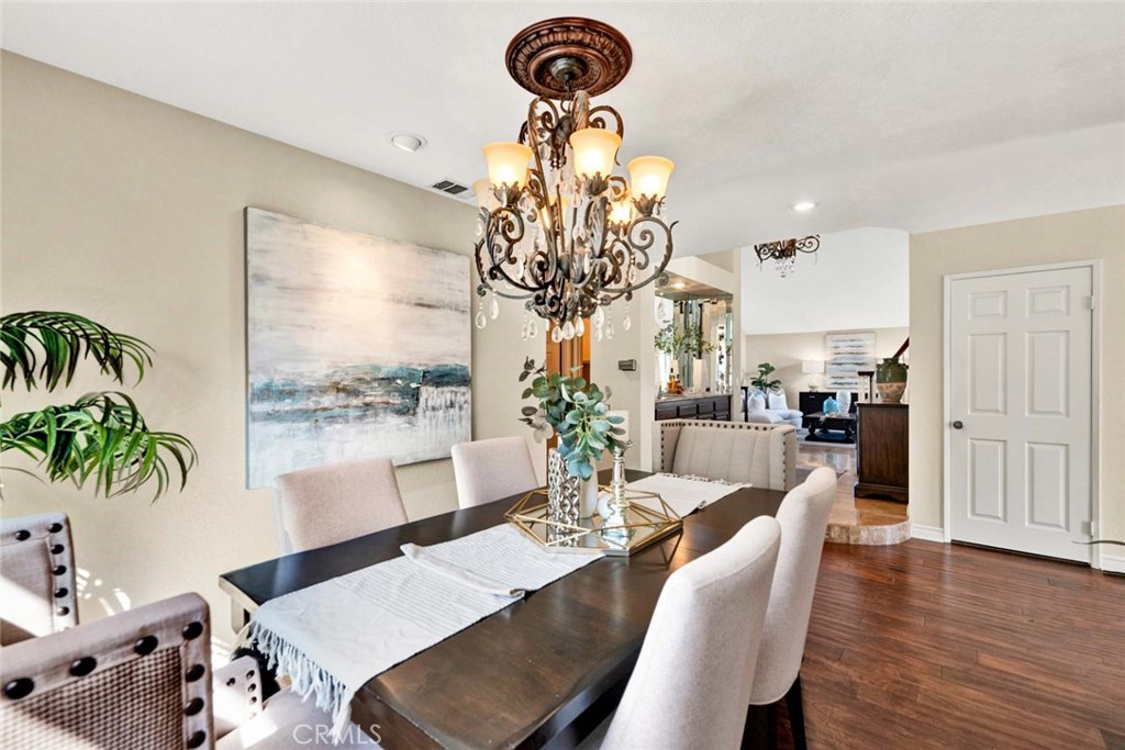 Are you looking for a turn key home with a fabulous views? This is the house for you. As you arrive you will be impressed by the great curb appeal. As you walk up to the double door entry you will notice the professional landscaped entry. Through the front door you will find a very inviting interior which will feature an open house concept, vaulted ceilings and a very spacious living room for your entertaining. Adjacent to the living room you will welcomed to the formal dining room which will be perfect for your dinner guests. From the formal dining room you will enter into the open family room and remodeled kitchen. The spacious family room has a gas fireplace and will be a great area for you and your guests to congregate to watch those sporting events or just to relax around the fireplace. The kitchen is truly for the gourmet cook. The kitchen features a beautiful island, granite counter tops, beautiful wood cabinets, and stainless steel appliances. There is a downstairs bedroom & 3/4 bath for your guests. Upstairs you will find 3 bedrooms and a wonderful office area. The primary bedroom is very spacious and welcoming. The primary bathroom has been remodeled and features include granite counter tops, tile flooring, bath tub and separate shower. Also incudes a walk in closet. The bonus room located in the front of the house is large enough to be a game room, bedroom, office or reading room with a library which already have huge built in book cases. The back yard area will be great for entertaining. It has a grass area & a built in BBQ. Other backyard feature is the covered patio were you can enjoy a cup of coffee or a glass of wine. The valley views from the backyard are captivating. This home is located in High Horse Trails. There are stables which are available to residents on an availability basis, there is availability now for residents with horses. The home is close to shopping, freeways, parks & 241 toll road. This is a great area for those that like outside living.