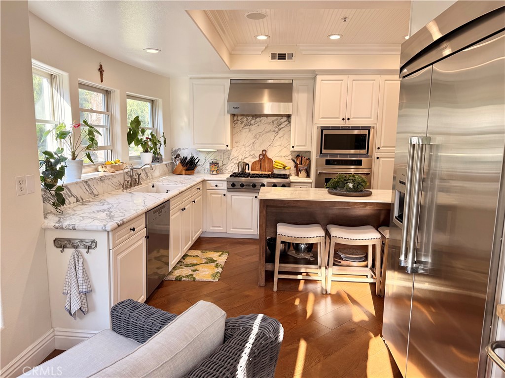 Laid back Luxury and Country Club living at its finest. This UPPER single-level villa with approximately 2285 sq ft overlooks a tranquil greenbelt in what is arguably one of the most desirable locations in the community. Positioned on the upper level with no neighbors above and attached on only one side, the home offers exceptional privacy and serenity. The highly sought-after floor plan creates an immediate sense of grandeur, featuring soaring ceilings, refined architectural details, and a wide, open footprint that lives like a single-family home. Two spacious primary suites—each with its own en-suite bath—are thoughtfully placed at opposite ends of the residence for maximum privacy. A separate, versatile room serves perfectly as a den, home office, or optional 3rd bedroom. Designer upgrades were meticulously curated to elevate both form and function, blending timeless elegance with modern sophistication. Highlights include a custom wine closet, bespoke window treatments, crown molding, rich hardwood flooring with upgraded baseboards, solid wood interior doors with updated hardware, custom fireplace surrounds, upgraded lighting throughout, and a kitchen featuring marble countertops and stainless steel appliances. New HVAC system, new 50 gallon water heater. Large 2 car garage w/built-ins. Residents have the option to separately join the private Marbella County Club, offering world-class golf,tennis, fitnes facilities, classes, pickleball and a Jr. Olympic lap pool. The community is located near award-winning schools and many prestigious private schools. For work Freeway and Toll Road close. No Mello Roos. Step outside to a generously sized, ultra-private patio complete with a soothing water feature and retractable awning—an ideal setting for relaxing or entertaining, with the unmistakable feeling of being “away from it all.” A large two-car garage completes the residence. Located within the prestigious, guard-gated Marbella Country Club, residents enjoy world-class amenities including an exclusive 18-hole golf course, tennis courts, junior Olympic-sized pool, private clubhouse, fitness center, and more. Take your own golf cart to the course or enjoy a leisurely walk to the clubhouse for dinner—this is resort-style living at its absolute best.