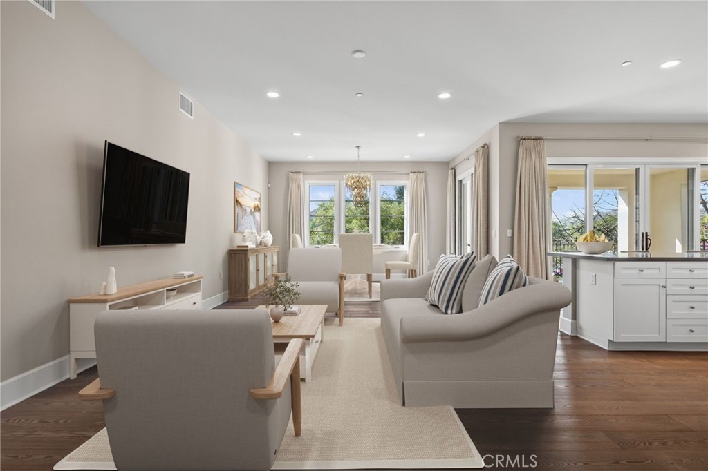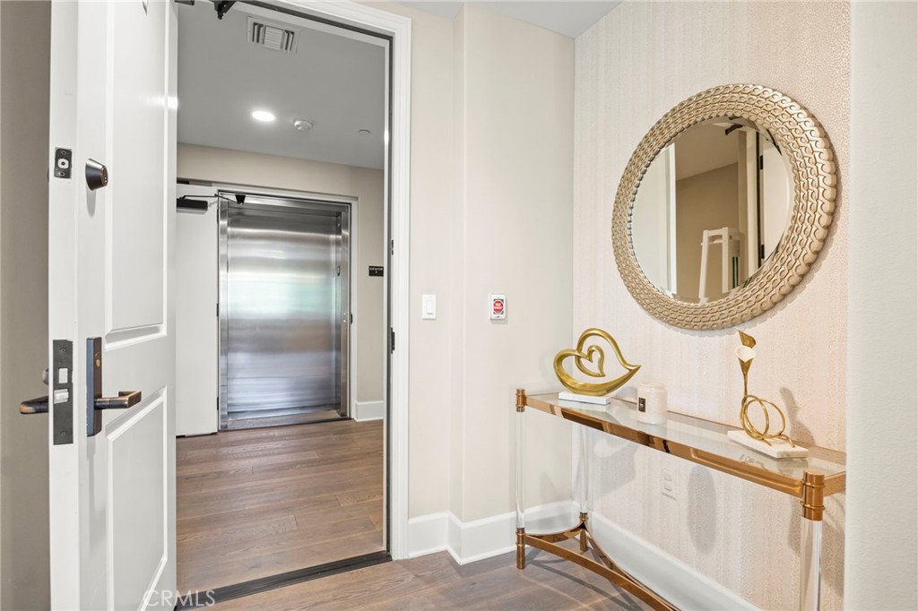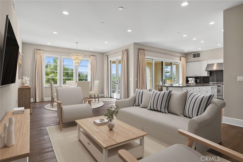 Avanti represents premier luxury living in the heart of Calabasas. This upscale, gated community offers refined single-story residences with unmatched convenience—just moments from The Commons, Courtyard at the Commons, Trader Joe’s, the weekend Farmers Market, Calabasas Lake, and the Calabasas Swim and Tennis Club. Residents enjoy a secure, residents-only lobby with private elevator access that opens directly into the home’s personal foyer. This light-filled residence features extensive upgrades, including custom lighting, designer drapery and wallpaper, wide-plank wood flooring, neutral bedroom carpeting, ten-foot ceilings, and divided-light windows with wood trim. The open living area offers two sets of sliding doors that lead to an oversized patio, creating seamless indoor–outdoor California living. The kitchen includes white shaker cabinetry, an oversized island with seating for four, Sub-Zero refrigeration, a five-burner range, LED lighting, and high baseboards. A spacious laundry room adds abundant storage, cabinetry, and a utility sink. Both bedrooms are ensuite. The generous secondary suite functions well as a guest room, office, or flexible space with room for a Murphy bed. The expansive primary suite features custom built-ins with added closet storage, two integrated desk areas, treetop views, custom wallpaper, and a spa-inspired bath with an oversized shower and tub, double sinks, and beautiful marble finishes. The primary closet is quite large and fully built out. In addition, there is a large powder room for guests. Additional highlights include two parking spaces conveniently close to the elevator—no stairs required—plus dedicated storage. Community amenities include an on-site manager, security gate, fitness center, pool and spa, and a serene outdoor fireplace patio area overlooking the creek. This residence offers the daily experience of a luxury resort—ideal as a turnkey pied-à-terre or a full-time home.