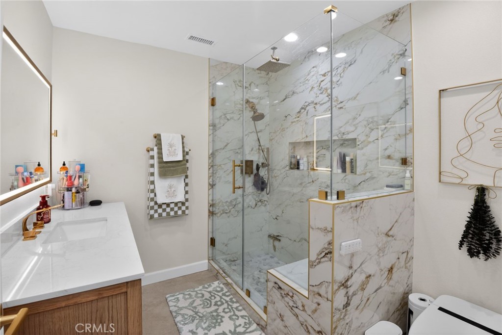 Welcome to this fully remodeled, turn key 3 bedroom, 3 bath home, thoughtfully upgraded from top to bottom and ready for immediate move-in. This home features two expansive primary suites, each with its own attached bathroom and walk-in closet, offering exceptional flexibility for multi-generational living, guests, or a private home office setup. All bedrooms include walk-in closets, with a custom upgraded closet in the second bedroom. The interior showcases new tile and vinyl flooring, fresh designer paint, modern interior doors, and premium hardware throughout. A completely renovated kitchen anchors the home with custom cabinetry, new countertops, and brand new Samsung Bespoke energy efficient appliances, perfect for both everyday living and entertaining. Every bathroom has been reimagined with spa style finishes, modern vanities, designer fixtures, and latest automatic smart toilets, delivering a true luxury experience. Major system upgrades provide peace of mind, including a new roof, energy efficient Paid Off solar system, upgraded and new plumbing throughout, new sewer lines, a new main plumbing line, upgraded electrical panels, and new AC ducting for improved airflow and comfort. Modern recessed lighting, dimmable switches, and sensor lights enhance both ambiance and efficiency. Outside, enjoy a fully designed front and backyard complete with a pergola, new outdoor lighting for curb appeal and security, and new side exterior doors creating a seamless indoor outdoor lifestyle. Attached garage, 2 spots in the driveway and ample street parking available. This is a rare opportunity to own a beautifully upgraded home where style, comfort, and functionality come together effortlessly. Centrally located near shopping, restaurants & entertainment. Just minutes from down town LA and LAX airport.