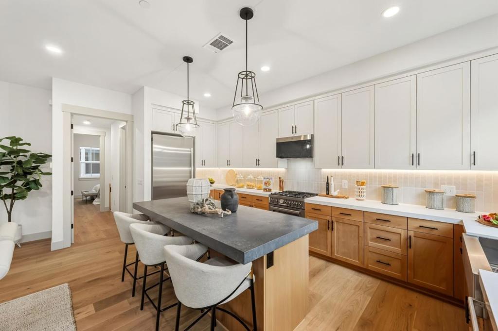 Situated within Carlton Estates at Vivi Place, a brand-new luxury community on the border of San Jose and Los Gatos, this expansive residence offers a versatile four-bedroom layout designed to accommodate today's lifestyles. A main-level bedroom with a full bathroom provides an ideal setup for guests, multigenerational living, or a private home office, while additional bedrooms upstairs offer generous space and privacy. The interior is highlighted by impressive 10-foot ceilings on the main level and 9-foot ceilings upstairs, creating a strong sense of volume and openness. The chef's kitchen anchors the home and is outfitted with premium Bertazzoni appliances, modern cabinetry, and refined finishes. Open living and dining areas provide an inviting environment for entertaining and everyday comfort. Ideally located near Downtown Los Gatos, Vasona Lake, Nob Hill Foods, and major tech campuses such as Netflix, this home delivers the rare combination of new construction, flexible layout, and a highly sought-after Silicon Valley location.