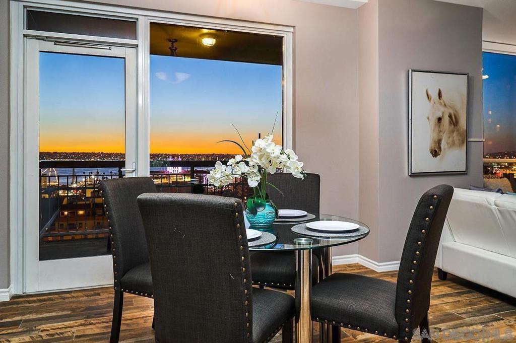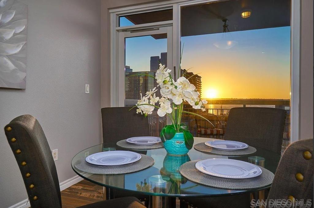 Ideally positioned in the coveted northwest corner of the La Vita residences, this beautifully appointed 2-bedroom, 2-bath home captures sweeping bay and city views in one of Downtown San Diego’s most cherished neighborhoods. Spanning approximately 1,132 square feet, the residence showcases upgraded wood-grain ceramic tile flooring, an inviting fireplace, a desirable split-bedroom floor plan, and a private balcony offering a front-row seat to the energy and charm of Little Italy. The thoughtfully designed kitchen features granite countertops, a custom tile backsplash, recessed and under-cabinet lighting, and a convenient breakfast bar—perfect for both everyday living and entertaining. Both bedrooms offer generous walk-in closets, complemented by central heating and air conditioning, ceiling fans, refined baseboards, and the convenience of two side-by-side parking spaces. Offered furnished or unfurnished, La Vita residents enjoy an exceptional collection of resort-style amenities, including a pool and spa, fitness center, lushly landscaped courtyards with fountains, barbecue areas, sun deck, and a recreation room with pool table. Just moments from acclaimed dining, boutique shopping, the waterfront, Seaport Village, the Gaslamp Quarter, and Petco Park, this is urban living at its finest—an exceptional opportunity to experience the vibrant Little Italy lifestyle.