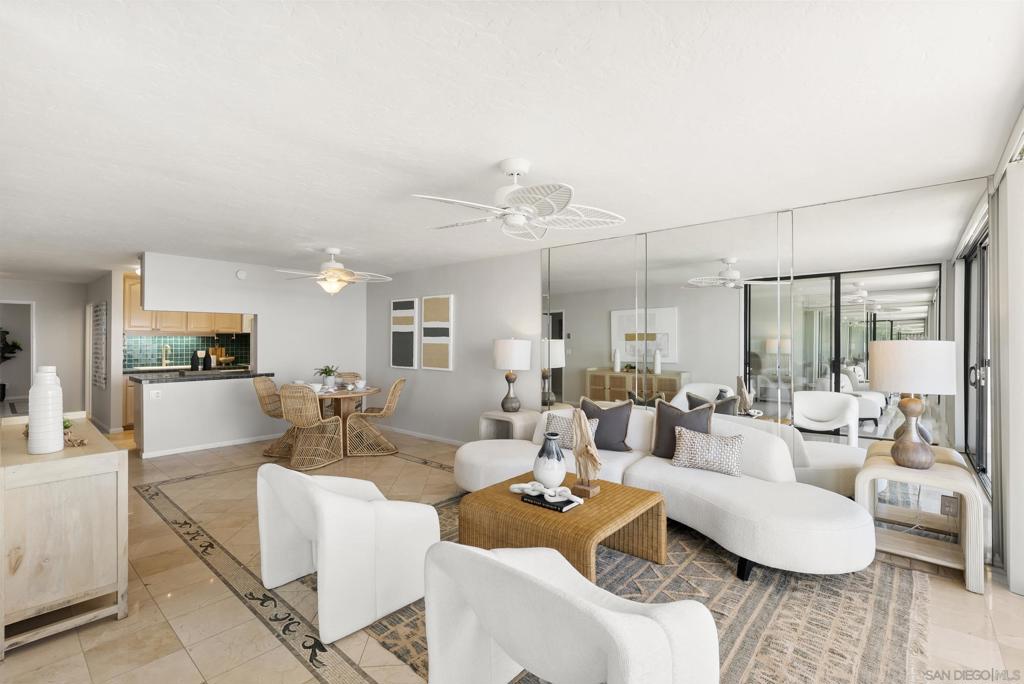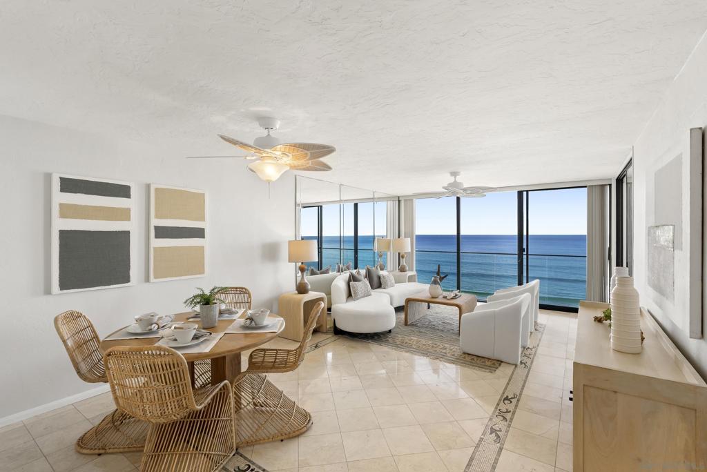 Enjoy remarkable floor-to-ceiling views of breaking waves, the coastline, and unforgettable sunsets from this premium high-floor 2-bedroom, 2-bath waterfront condo in North Pacific Beach. Beautifully maintained, the residence features custom tile flooring and beach-friendly finishes throughout, with an open-concept kitchen and breakfast bar that flows seamlessly into the great room overlooking the Pacific. Glass railings and a Juliette balcony create an effortless connection to San Diego’s ocean breezes and year-round coastal climate. The primary suite captures sweeping water views, while the secondary bedroom offers easterly vistas across Pacific Beach to the distant mountains. The home includes one garage parking space in an exceptionally convenient, easy-to-park location suitable for most SUVs. One of the few high-rise buildings directly along San Diego’s shoreline, The Capri by the Sea offers resort-style amenities including fob access, an attended lobby, elevators, pool and spa, beach shower, sauna, and a rooftop deck with BBQs. The building is also among the limited beachfront properties that allow short-term rentals. Public beach access by ramp is located directly in front of the building along the boardwalk.