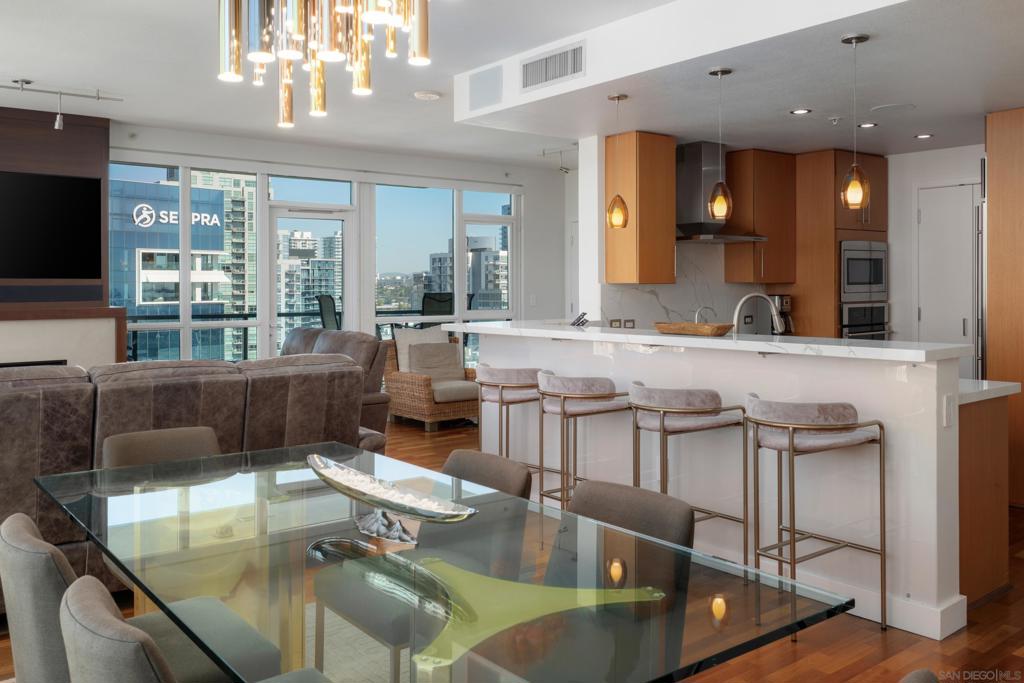 Welcome to elevated urban living at The Legend. This beautifully updated residence perched above the heart of Downtown San Diego has natural light in abundance and showcases sweeping views of downtown's renowned skyline, San Diego Bay, and Petco Park; offering a dynamic backdrop by day and a striking cityscape by night. The interior has been thoughtfully refreshed with a modern, sophisticated aesthetic, featuring updated kitchen and bath finishes, a clean contemporary design, and an open layout ideal for both daily living and entertaining. An upgraded Lutron lighting system allows for seamless, customizable ambiance throughout the home, enhancing both comfort and functionality. Residents enjoy a full suite of luxury amenities, including 24-hour security and concierge services, providing convenience, privacy, and peace of mind. Whether you’re enjoying a quiet evening overlooking the ballpark, hosting friends before a game, or taking in sunset views over the bay, this residence delivers an exceptional downtown lifestyle. Ideally located just steps from world-class dining, nightlife, entertainment, and the waterfront, this home offers the perfect blend of refined living, iconic views, and resort-style amenities in one of San Diego’s most vibrant urban settings.