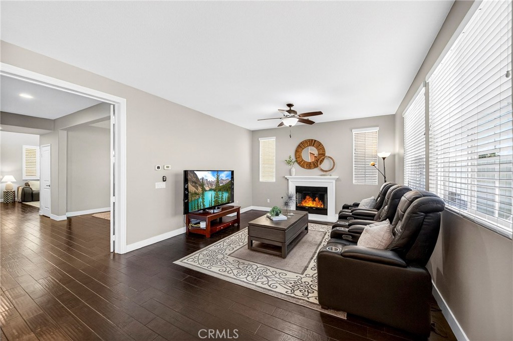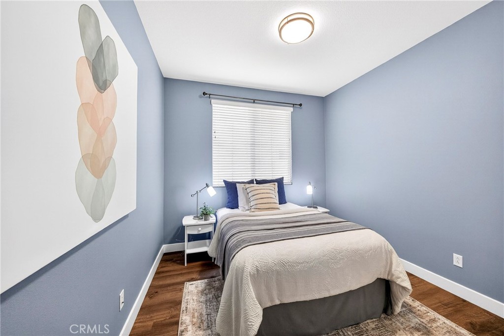 Welcome to the gated community of Laurel Gate! This beautiful single-family home features hardwood floors on the main level and a bright, open kitchen with granite countertops and stainless steel appliances overlooking the family room. The floor plan offers a convenient downstairs bedroom and full bath, plus three additional bedrooms upstairs. The spacious primary suite includes a luxurious bath with dual sinks, a separate shower, a soaking tub, and a walk-in closet. Upgrades include all bathrooms remodeled with quartz countertops in 2019, SPC waterproof flooring installed upstairs (including the stairs) in 2019, plantation shutters added in 2017, and artificial turf in the front yard along with backyard cement work completed in 2022. The home is also energy-efficient with 12 fully paid-off solar panels (4.23 kWp each). Community amenities include a pool, spa, and recreation area. Move-in ready with style, comfort, and efficiency in a desirable gated neighborhood!
