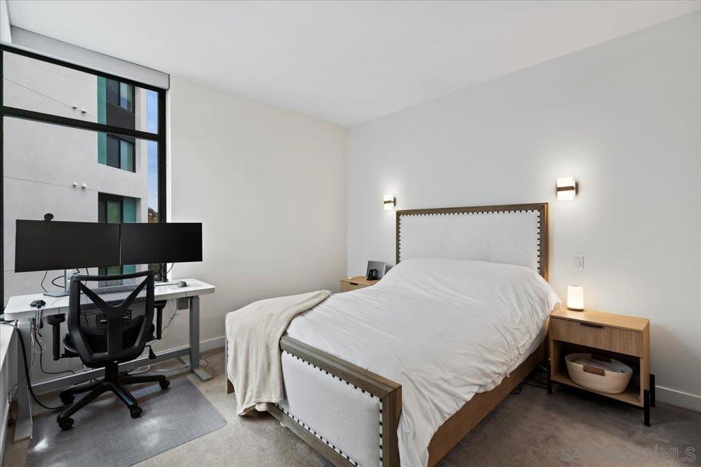 Set within the coveted desirable northwest corner of Aria in the serene enclave of Cortez Hill, this sophisticated residence delivers an exceptional blend of modern elegance and effortless livability. Sun-filled interiors unfold across a thoughtfully designed open floor plan, anchored by a beautifully updated kitchen featuring waterfall-edge quartz countertops, premium stainless steel appliances, abundant cabinetry, and a generous breakfast bar ideal for entertaining. Expansive windows bathe the living space in natural light and extend seamlessly to a spacious private balcony—perfect for morning coffee, sunset cocktails, or al fresco gatherings against the backdrop of city energy. Privacy and comfort are artfully balanced with a split-suite layout, offering two well-appointed primary retreats on opposite sides of the home. The main suite showcases dramatic corner windows, a walk-in closet, and a sleek ensuite bath with dual vanities and a walk-in shower, while the secondary suite provides a private ensuite ideal for guests or extended stays. Thoughtful upgrades include motorized living-room shades, full-size in-unit laundry, and two assigned garage parking spaces. Residents of Aria enjoy resort-inspired amenities including a 70-foot lap pool, spa, state-of-the-art fitness center, elegant resident lounge, on-site management, and secured FOB entry. Ideally positioned moments from Balboa Park, Little Italy, Petco Park, the Embarcadero, and the Gaslamp Quarter—with easy access to San Diego International Airport—this is elevated urban living at its finest and a must see!