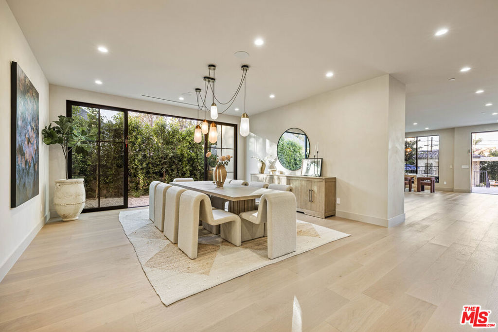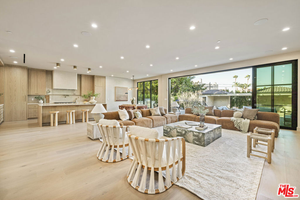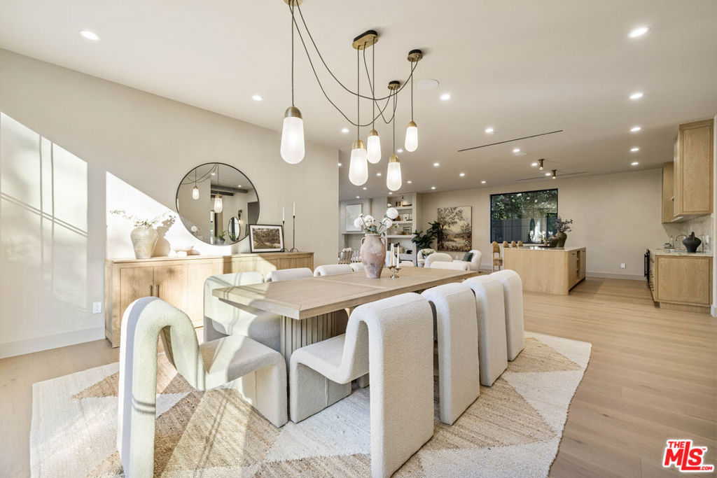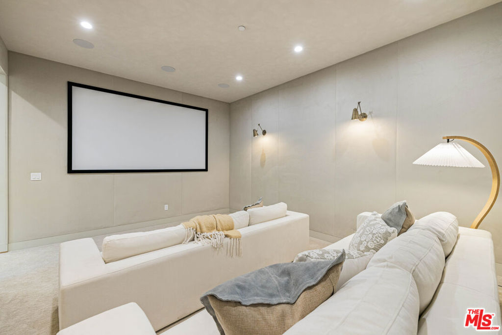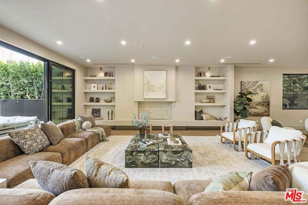 Welcome to Casa Verde, one of the largest and most extraordinary homes ever built south of the Boulevard in Sherman Oaks. Set on an expansive 13,000 sq ft lot, this 5-bed, 7-bath estate blends timeless European influence with high-end contemporary design, featuring hand-applied limewashed walls, a sculptural plaster staircase, and natural light pouring in from every angle. Step through the custom oversized pivot door and you're immediately met with soaring ceilings and a floor plan crafted for true indoor/outdoor entertaining. A large custom bar sits at the center of the home, creating a stunning focal point and seamless flow into the expansive dining area, where floor-to-ceiling sliders open to a private outdoor sanctuary anchored by a limestone fireplace. The chef's kitchen features custom white oak cabinetry, travertine counters, and panel-ready appliances that disappear into the design. A hidden butler's kitchen with its own cooktop, sink, dishwasher, and walk-in pantry keeps prep work tucked away when hosting. The generous family room opens to the oversized backyard with ample patio space, an outdoor kitchen, large pool, two covered cabanas, and a full bathroom. The main floor is completed with a large home theater, office, bedroom and reading nook. Upstairs are 4 additional bedrooms, each with its own en-suite bath and walk-in closet. The oversized primary suite offers a floor-to-ceiling stone fireplace, two balconies, an expansive walk-in closet, and a private bonus room ideal as a yoga studio, nursery, or second closet. The spa-like bathroom features a large zellige-tiled rain shower, freestanding tub with mountain views, makeup vanity, and dual water closets.Tucked in an exceptional walkable pocket, Casa Verde is moments from some of the city's best restaurants and coffee shops, Anajak Thai, Bacari, The Blvd, Cream, and more, as well as The Buckley School. This is a rare opportunity to own a statement property defined by scale, design, and craftsmanship.