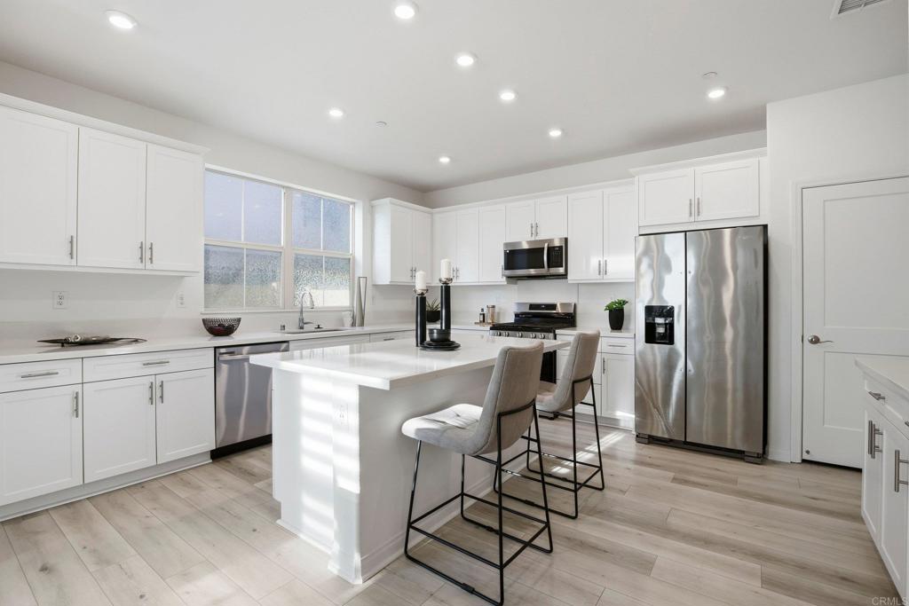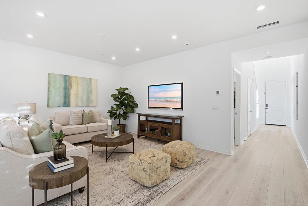 Welcome home to 1700 Laurelwood Way in the highly desirable Strand community of Melrose Heights in Oceanside! This stunning end unit 4-bedroom, 2.5-bathroom townhome offers the perfect blend of modern comfort and coastal charm. Built in 2023, this 2,143 sq. ft. home features paid solar, central AC with dual zone thermostats, soaring 9-ft ceilings, and upgrades throughout. The open-concept great room is bathed in natural light, leading to a gourmet kitchen with ample cabinet and counter space for you to make your favorite meal. The primary suite is a true retreat, featuring a spa-like soaking tub, walk-in shower, and a custom walk-in closet with elegant features. Enjoy effortless indoor-outdoor living with a low-maintenance wrap around backyard with artificial turf plus a grassy play space right outside your front door. The attached two-car garage and additional one-car driveway provide ample parking and storage as well as prewired for your EV charger. This smart home is equipped with MyQ Garage, a Ring Doorbell, a Schlage Smart Lock, dual Honeywell Home Smart HVAC system, dual eero Wi-Fi extenders for the ultimate in technology and convenience. Melrose Heights is a resort style community featuring a pool, hot tub, fire pit, BBQ, greenbelts and multiple playgrounds allowing you to fully enjoy the coastal lifestyle. Ideally situated close to dining, shopping, schools, freeways and beaches, 1700 Laurelwood Way is a move-in-ready home and an incredible opportunity!