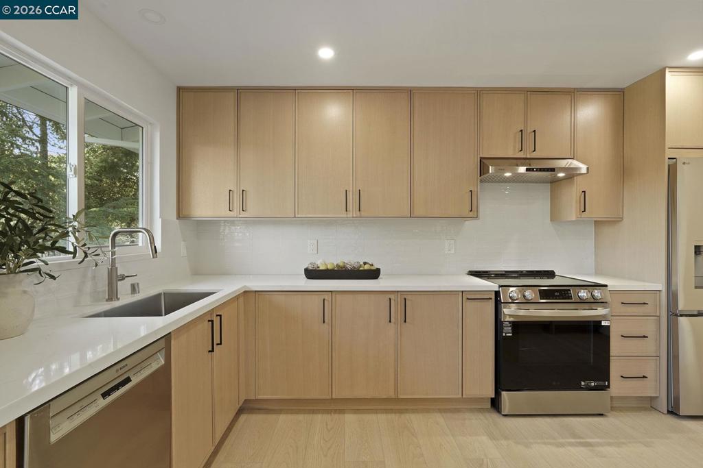 Completely remodeled in 2025, this beautifully transformed two-story contemporary blends mid-century character with sleek, modern finishes. Located in Lafayette’s coveted Burton Valley neighborhood, you’ll love the privacy of this serene hillside setting. The light-filled interior offers a flexible floor plan anchored by a striking double-sided fireplace and a stunning open-concept kitchen that flows seamlessly into expansive living and dining spaces. Nine brand-new sliding glass doors flood the home with natural light and frame picturesque hillside views from nearly every room. The lower level provides exceptional versatility—ideal as a teen retreat, private guest suite, or quiet work-from-home sanctuary. Designed for effortless indoor-outdoor living, enjoy a spacious upper deck, lower-level patio, and an expansive rear yard with an oversized paver patio—perfect for entertaining or relaxing. Ideally located near Lafayette’s beloved regional trail, top-rated schools, vibrant downtown Lafayette, Walnut Creek, regional parks, Highway 24, and easy access to Oakland and San Francisco.Tell a friend — this is Burton Valley living at its finest