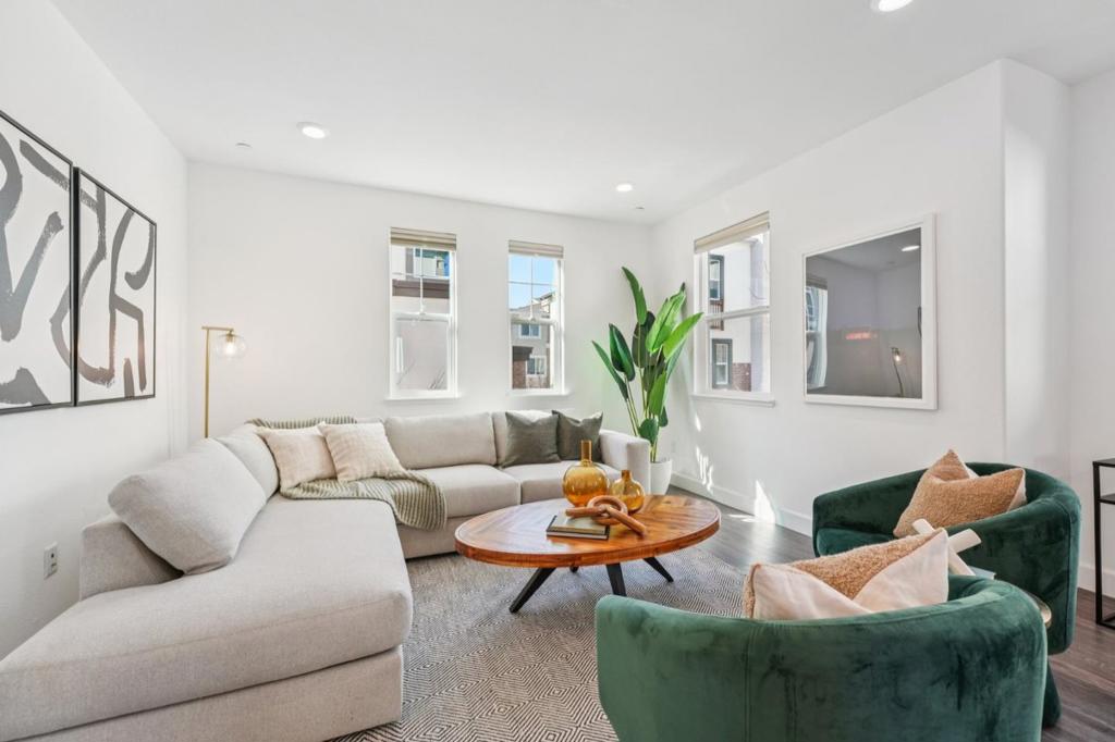 This luxurious, end unit, townhome is only 8 years old! The first floor features a bedroom with a full bath that's connected to the attached, 2-car garage. Head up the stairs where you are greeted by a large open living space. The second floor has an oversized kitchen with stone countertops and stainless steel appliances which flows directly into the substantial family room. If you want to have your morning coffee outside, just walk out to the covered balcony that is right off the kitchen. A half-bath and full laundry room round out the second level. When you walk up to the third floor, you will immediately be struck by all of the natural light. The large primary bedroom, en suite bathroom and walk-in closet is light and bright and airy. The third floor also has a large second bathroom and two additional bedrooms. This complex features a community park which is right across the street from a shopping mall where you can grocery shop, grab some dinner or a cup of coffee. We just painted and added new carpet so this beautiful home is ready for its new owner. Welcome to 1015 Abruzzo!