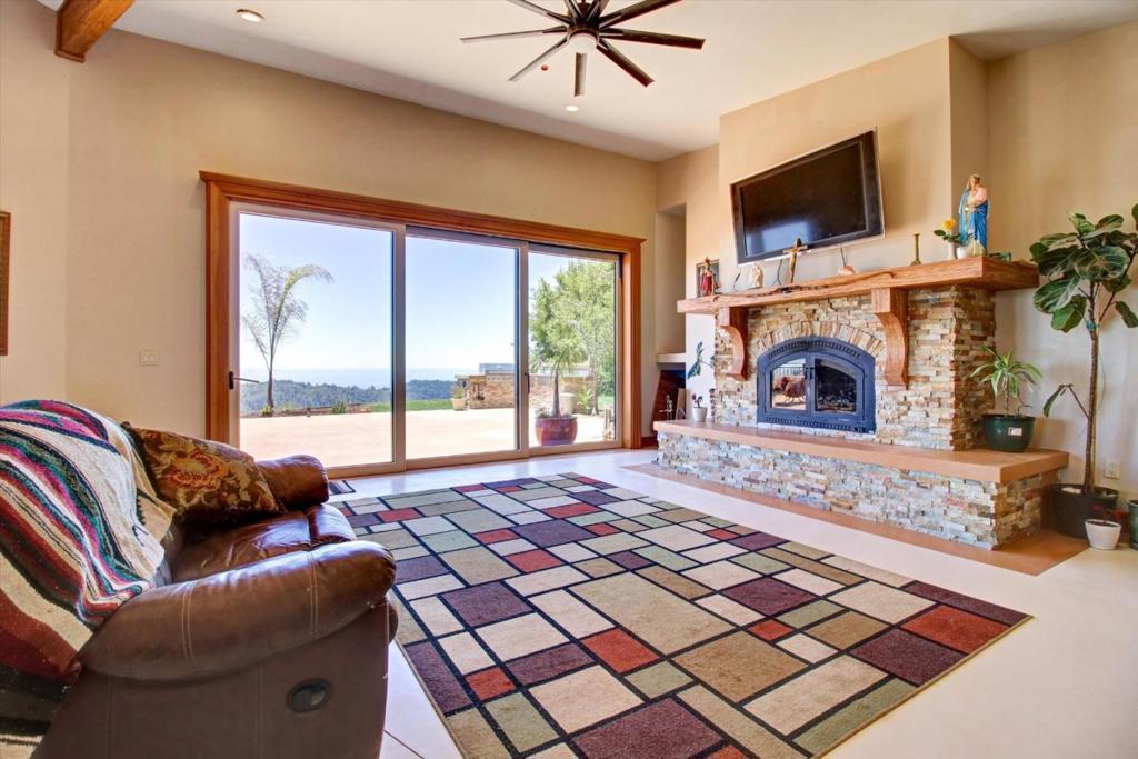 Enjoy sweeping Monterey Bay views, as far as your eyes can see, clean fresh air, and full sun, and your brand-new Custom Home awaits. This private property is the perfect getaway. Gated entrance fruit trees line driveway, elegant concrete steps, open great room, custom lighting, high ceilings, wood trim windows, a beautiful rock Fireplace, baby grand piano, Chefs Kitchen, abundant granite counterspace wrap-around island, pantry, laundry room, 6 car garage ~1200 sqft for all your motorcycles & toys, outdoor kitchen BBQ area, outbuilding could be a guest house, off-grid, solar-powered with a backup generator, flowing tasty water, SURFnet internet ~33 Acres of nature trails to explore, gardening, room to add a pool and hot tub, vineyard, infinity pool, helipad, etc. feels remote, whisked to beach, Silicon Valley, Santa Cruz, Monterey Bay, San Jose & San Francisco airports.