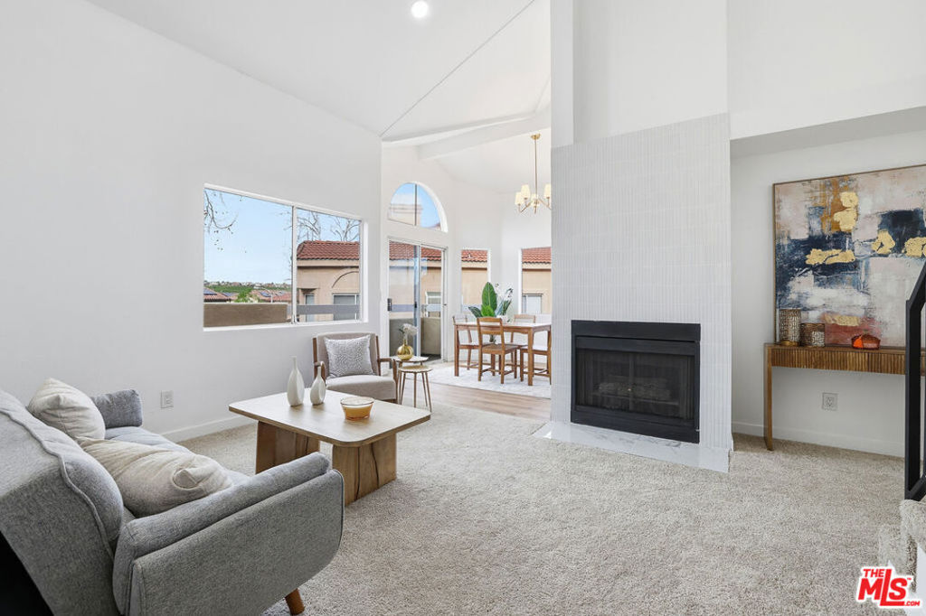 Rare corner-unit condo in the gated Sierra Glen community of Newhall! This bright 3-bedroom, 2-bath home features a spacious loft perfect for an office, gym, or bonus living space. Vaulted ceilings and abundant natural light fill the open living room with a cozy gas fireplace, flowing seamlessly into the dining area with a stylish chandelier. The kitchen boasts new appliances, updated hardware, and a sunny window over the sink with community views. Enjoy indoor laundry with washer and dryer included, a rare two-car side-by-side garage, and a private balcony ideal for relaxing or entertaining. High ceilings throughout enhance the sense of space, while the two-story end-unit layout offers privacy and comfort. Residents enjoy resort-style amenities including a sparkling pool and spa, controlled access, and well-maintained grounds. Perfectly located near the 14 Freeway, shopping, dining, and parks, with top schools nearby. With 1,078 sq. ft. of thoughtfully designed space, central heating and cooling, and HOA coverage for water, trash, insurance, pool, and spa, this condo combines convenience, style, and lifestyle. Ideal for first-time buyers, investors, or anyone seeking Southern California living in a prime Santa Clarita Valley location. Don't miss this exceptional opportunity!